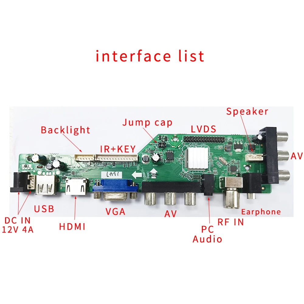 Чип контроллера: UA36A8C02Чип ТВ-тюнера: R842Язык OSD:Русский, Английский, чешский, французский, Magyar, Polski, Dansk, Espanol, Hrvatski, Nederland, Deutsch, Italliano, Norsk, Portugues, Suomi, svensk, арабский, И т. д. (больше, пожалуйста, проверьте видео)Входная мощность: DC 12V 4AВыходная мощность аудио: 2x8WПотребление: режим работы-> = 6 ВтПростой-<0,3 WВидео вход: ТВ: DVB-T / T2, DVB-C, аналоговый ТВ (A TV)HDMI-совместимыйVGAAV INДополнительные входы и выходы: аудио мини-джек 3,5 мм USB