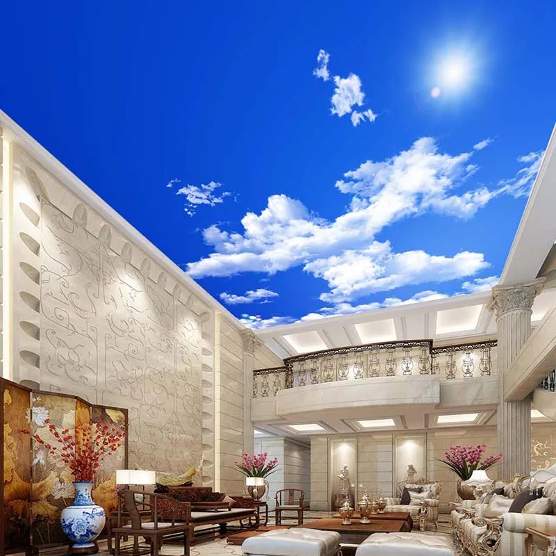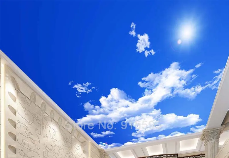 Фотообои с изображением голубого неба, белых облаков, солнечного света, на потолок, Зенит, по индивидуальному заказу, для гостиной, украшение на потолок, Настенные обои
