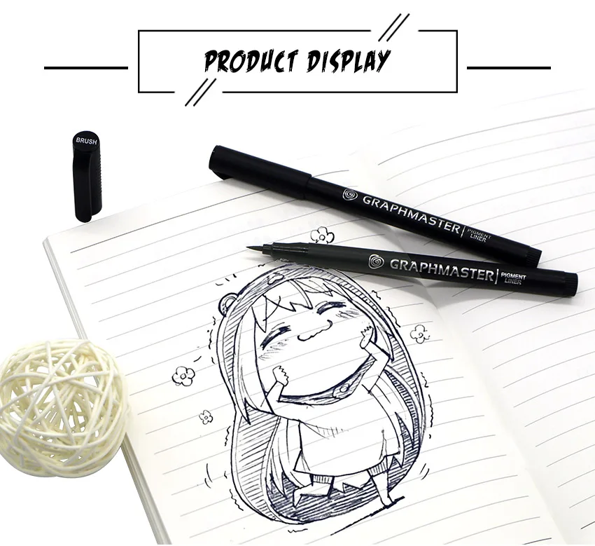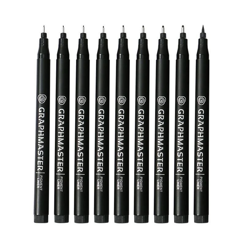 9 шт.компл., черный пигментный лайнер, водостойкая ручка для рисования, Pigma Micron, Солнцезащитный маркер для рисования, крючок, художественная ручка