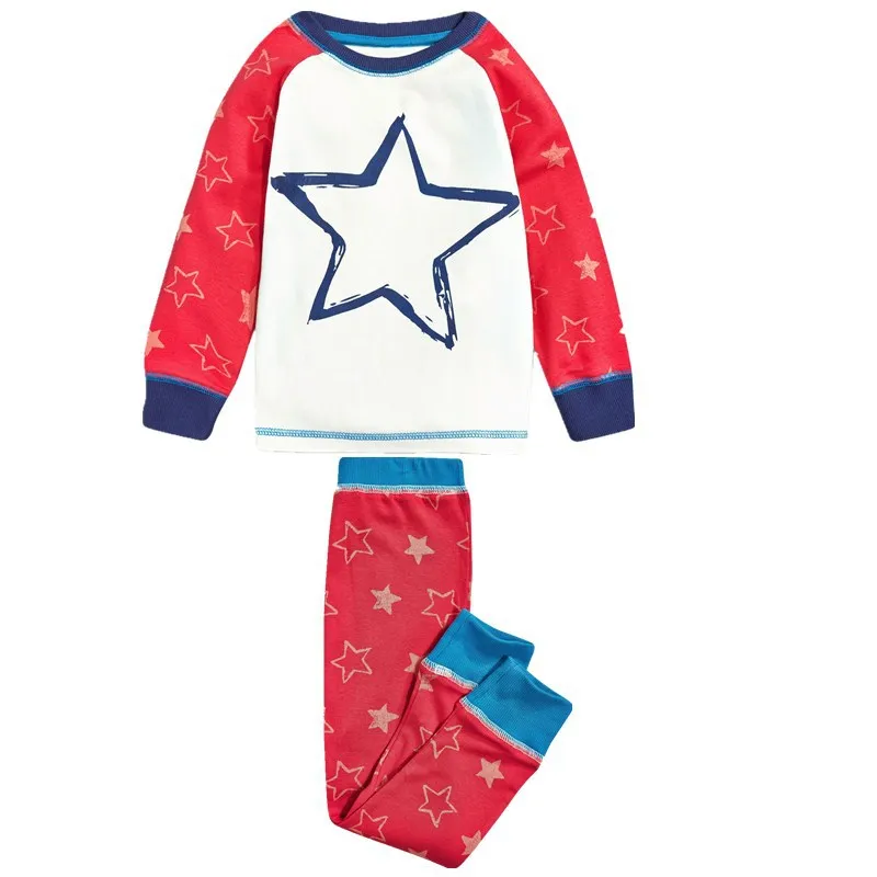 BINIDUCKLING осенняя одежда для сна для девочек и мальчиков 100% хлопковые Пижамные комплекты Детские пижамные комплекты с принтом звезд Весенняя детская одежда для сна PJs