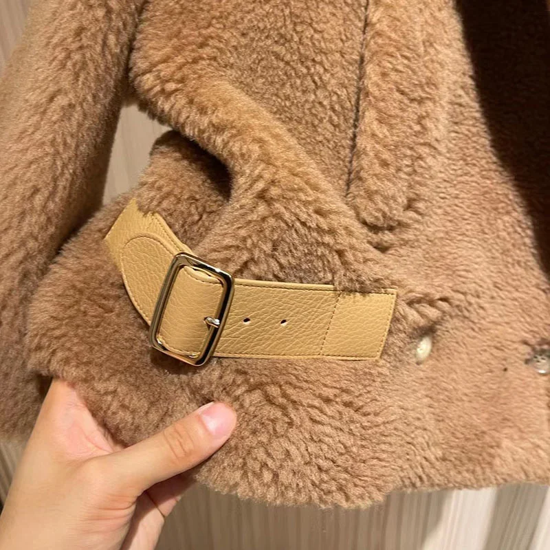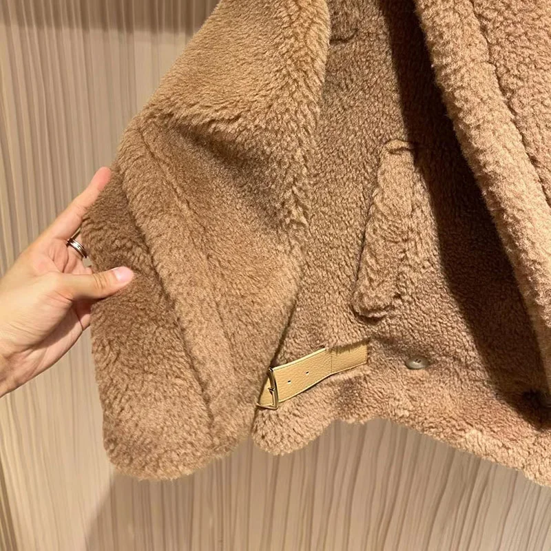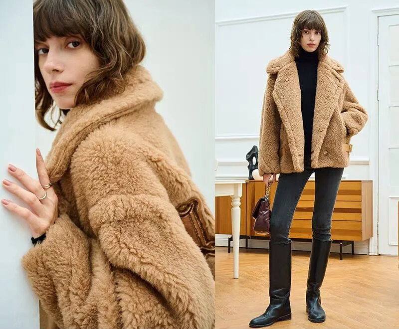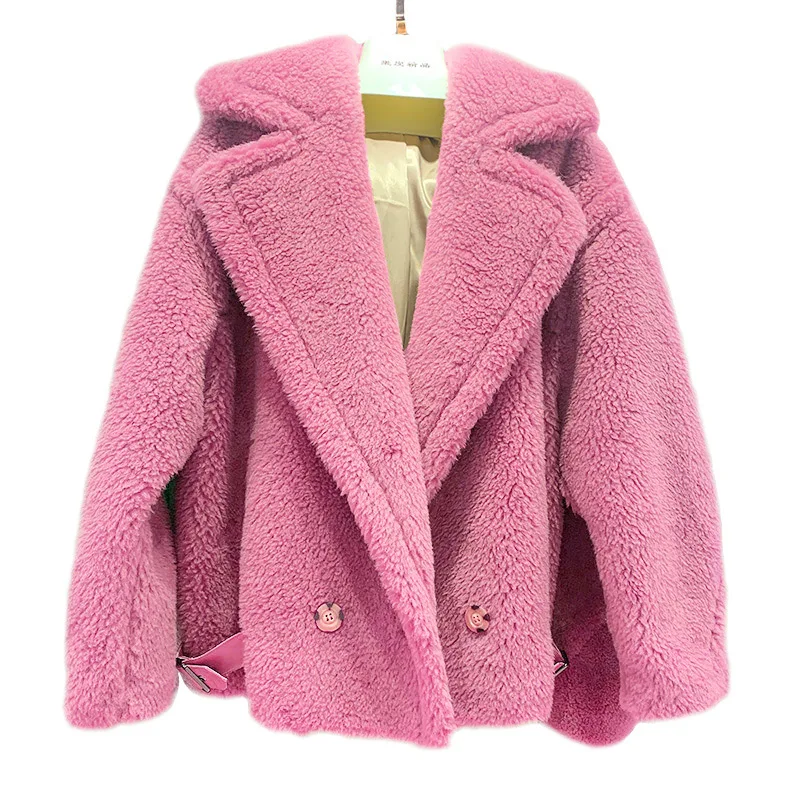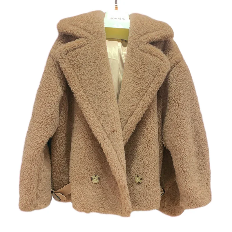 Женское меховое пальто, короткая куртка из натуральной шерсти, с мишкой из альпаки, зима 2021, уличная одежда, S3595