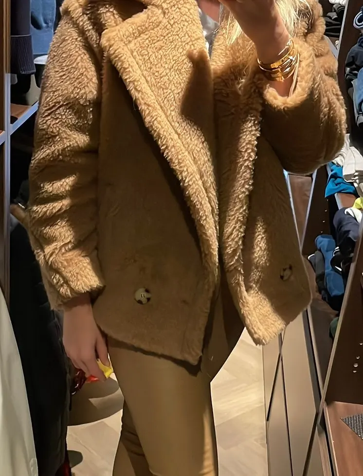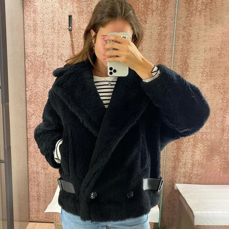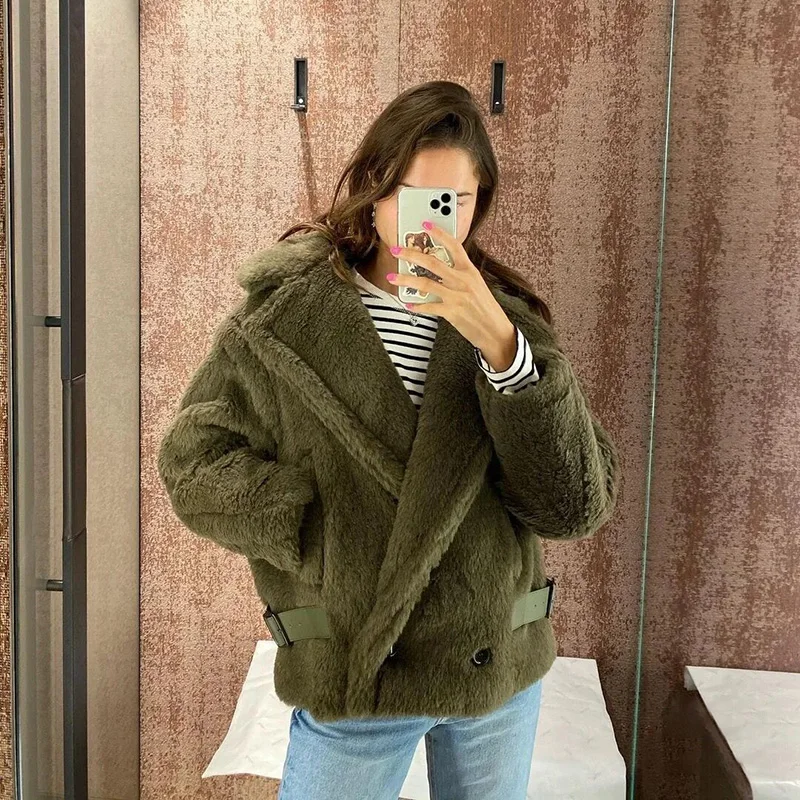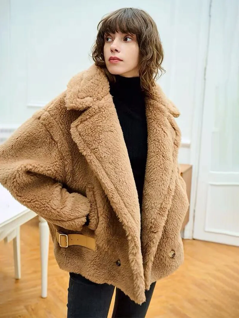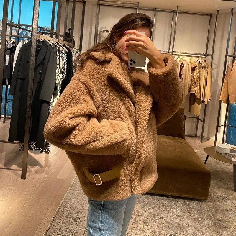 Женское меховое пальто, короткая куртка из натуральной шерсти, с мишкой из альпаки, зима 2021, уличная одежда, S3595