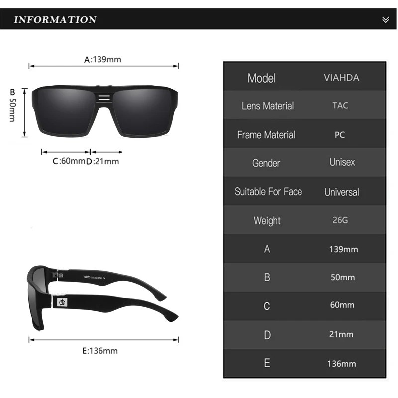 Мужские и женские солнцезащитные очки Viahda, квадратные поляризационные очки в оправе, с защитой UV400