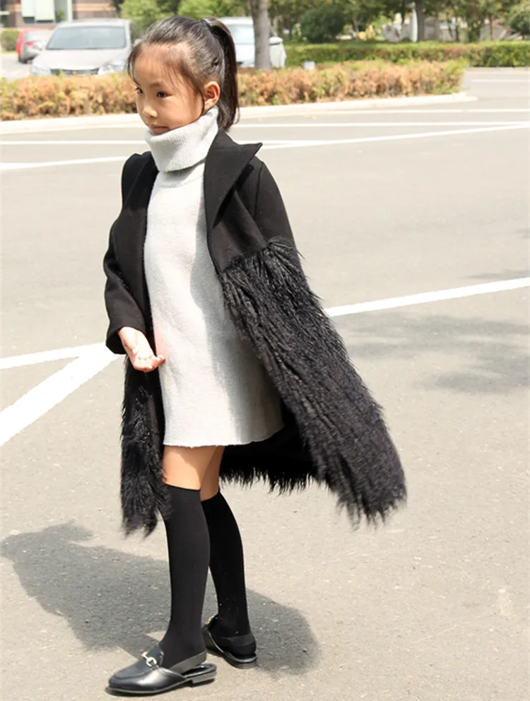 Детские шерстяные куртки для девочек 2020, зимнее пальто, лоскутные куртки из искусственного овечьего меха для девочек, шерстяные пальто, одежда из искусственного меха, длинный стиль