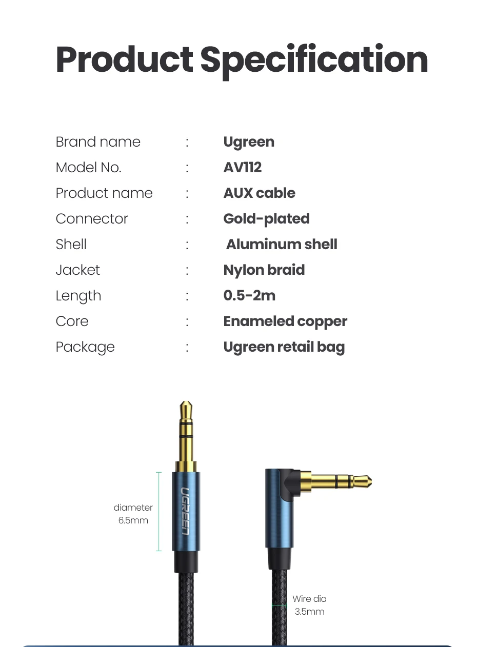 Аудиокабель Ugreen 3,5 мм, штекер-штекер Aux, аудиокабель 3,5 мм, вспомогательное оборудование для автомобильных наушников, MP34, телефонов, 3,5 мм