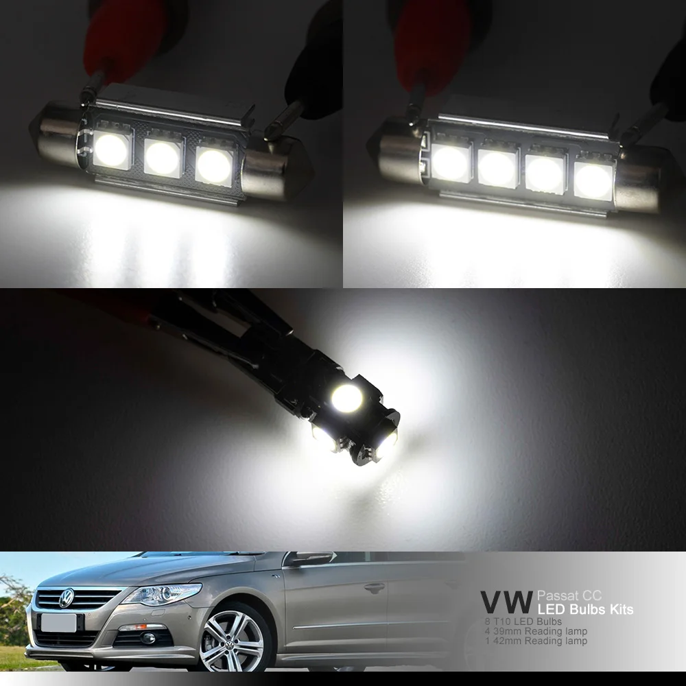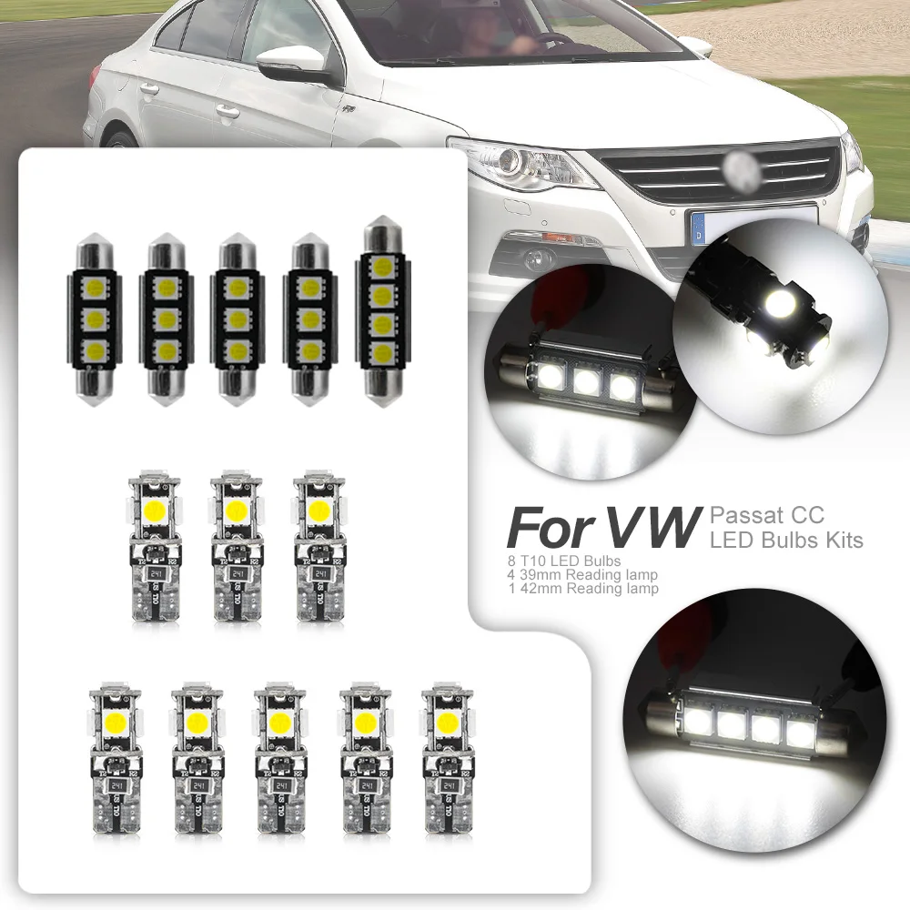 12 шт. ОШИБОК белый светодиодный светильник Интерьер посылка комплект для 2009-2016 Volkswagen VW Passat CC Arteon Купол Карта фонарь освещения номерного знака