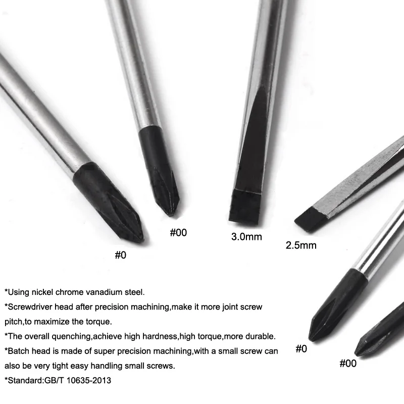 * Головка отвертки после точной обработки, делает ее более шарнирным шагом винта, чтобы максимизировать крутящий момент.