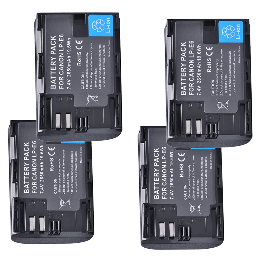 4 шт. 2650 мАч LP E6 LPE6 LP-E6N батарея + светодиодный двойной зарядное устройство для Canon EOS 5DS R 5D Mark II 5D Mark III 6D 7D 80D 90D EOS R R5 R6 RP