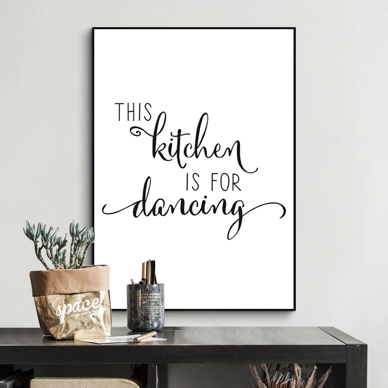 Минималистичный, эта кухня для танцев, цитата, холст, живопись, черно-белый настенный художественный постер, печать картин, кухонный Декор для дома