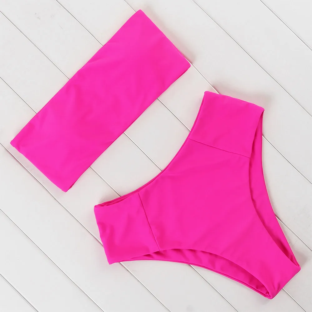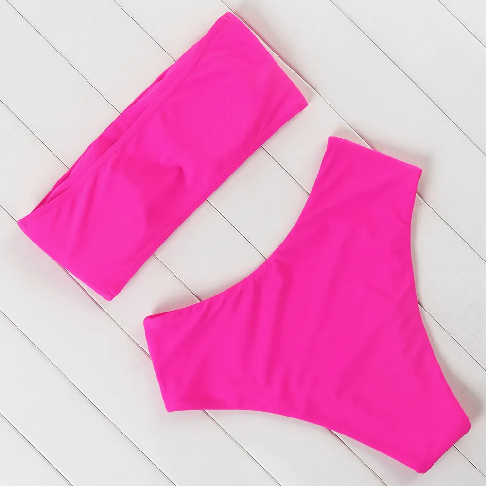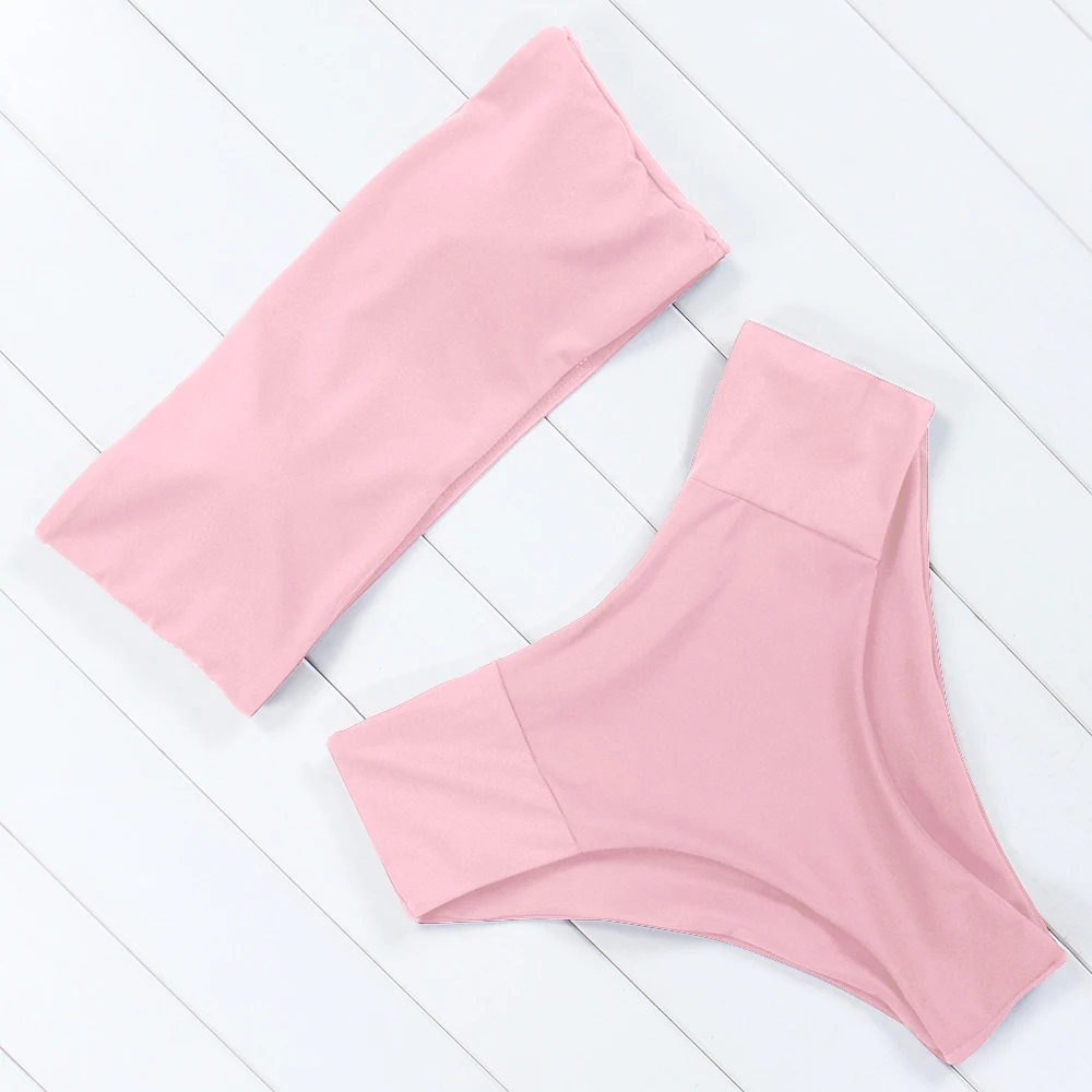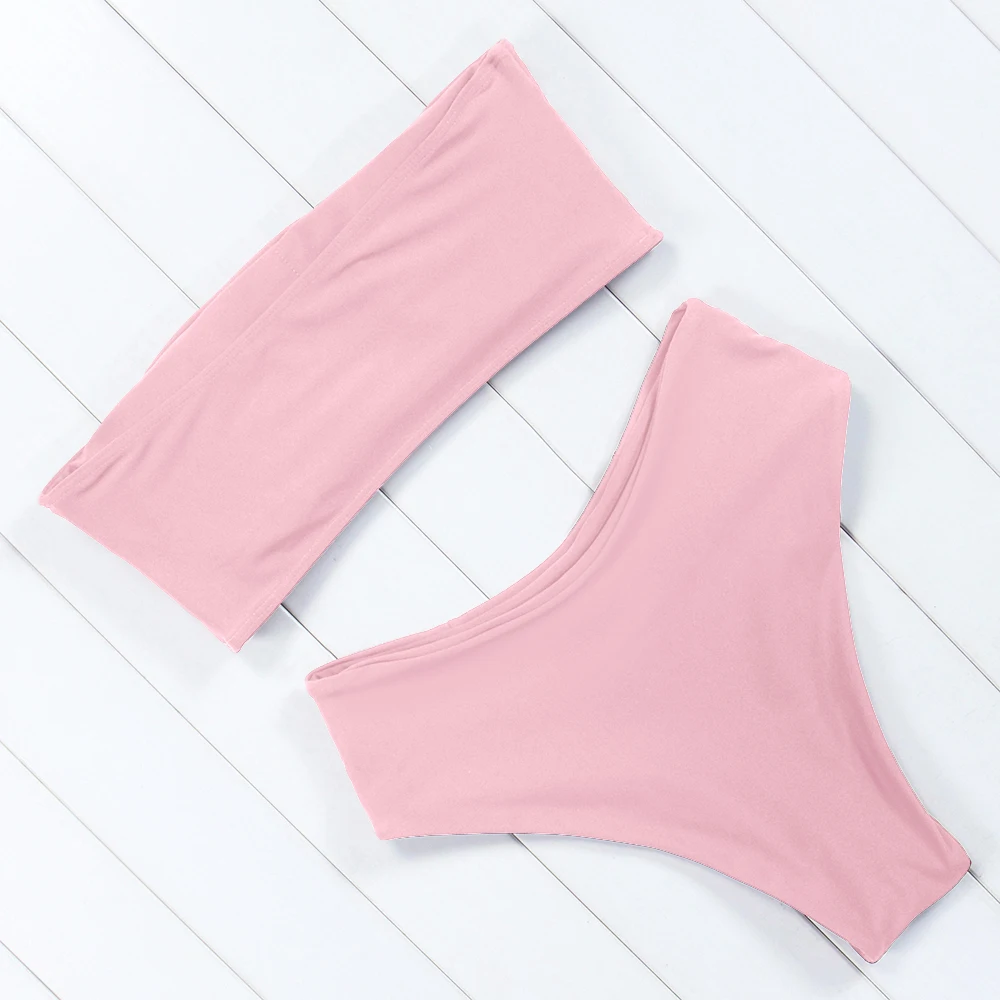 Купальник OMKAGI, женский, однотонный, с высокой талией, розовый, черный, белый, купальный костюм, бикини, бюстгальтер с мягкими чашечками, комплект бикини, 2021