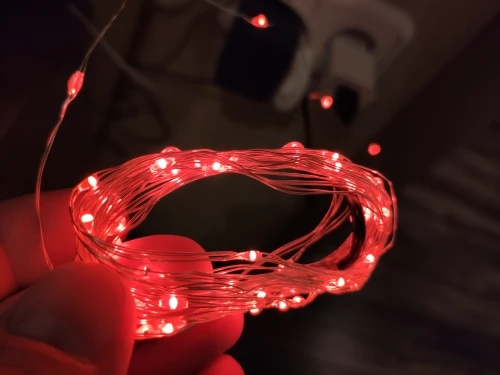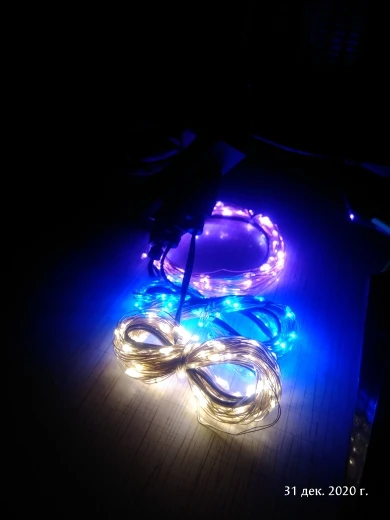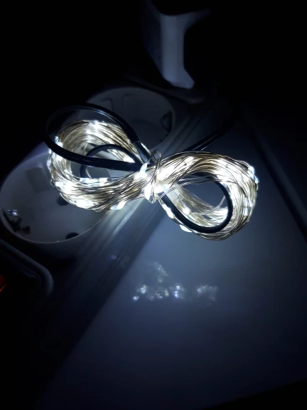 Очень долгая доставка, ждал 2 месяца. Гирлянда тонкая проволока с диодами, все светит. От павербанка почему-то не всегда работает, выключается, хотя выход 2 ампера. От USB зарядки в розетке горит без проблем.