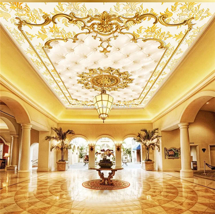 Настенные обои по индивидуальному заказу в европейском стиле с золотым узором, потолочные фрески для отеля, ресторана, гостиной, роскошные обои