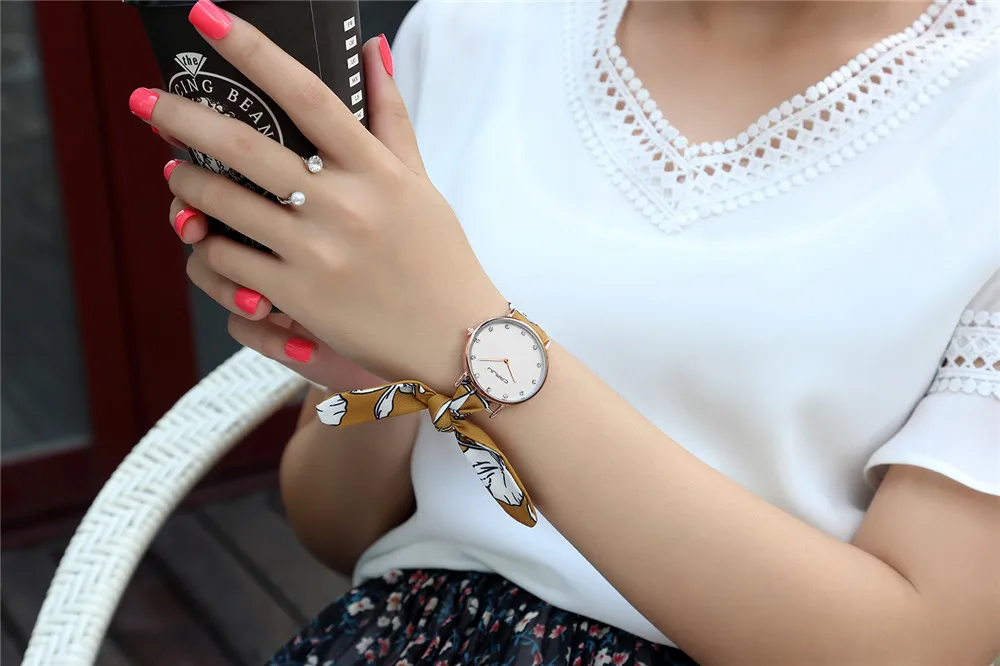 CRRJU Новый уникальный дамы цветок ткань наручные часы модная женск...