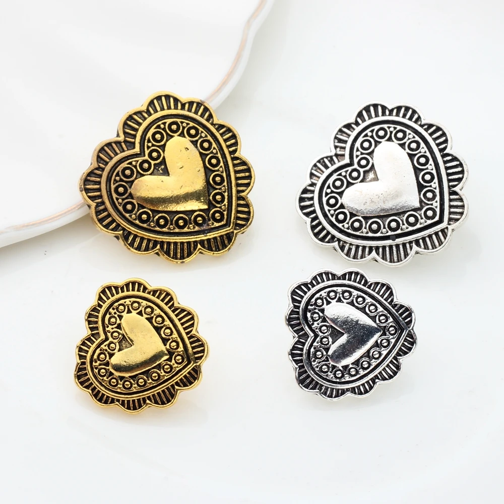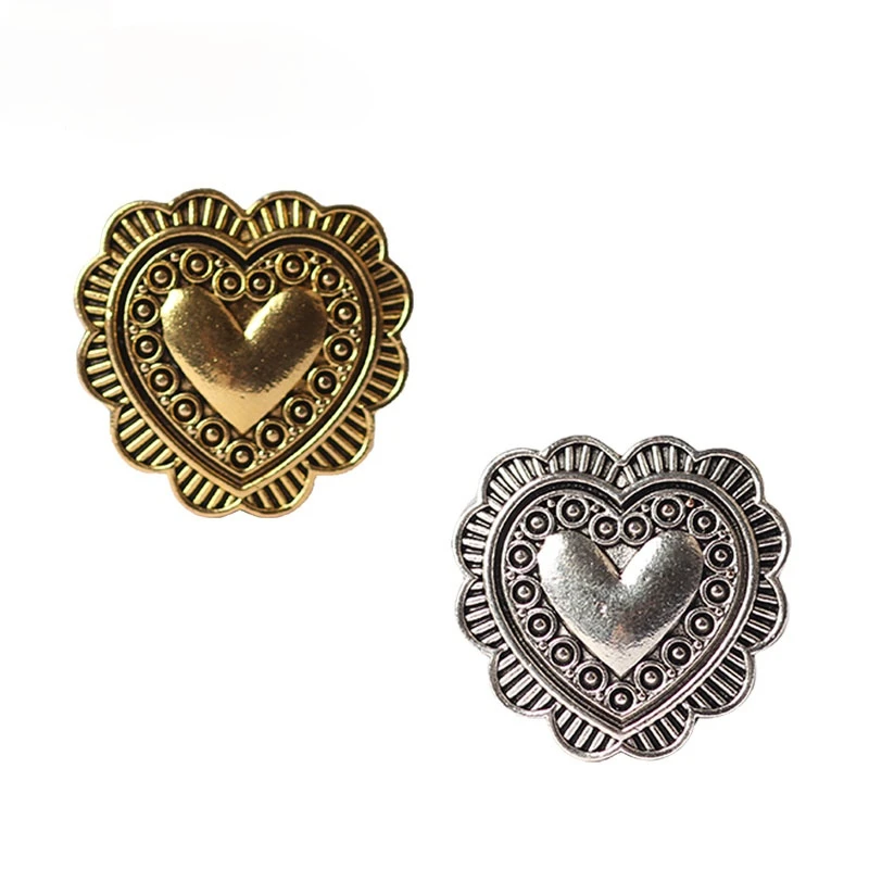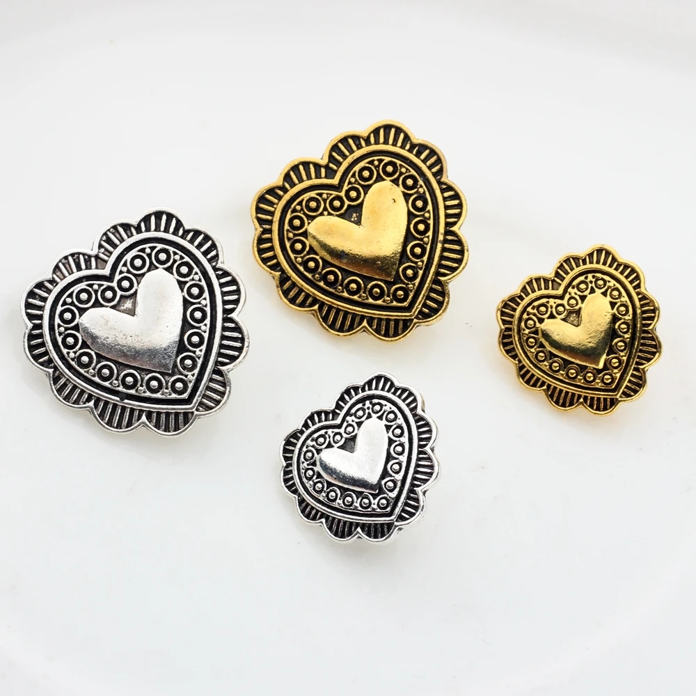 3 шт.лот 27 мм Ретро цинковый сплав милые сердца Золотые декоративные пуговицы Подвески для DIY аксессуары