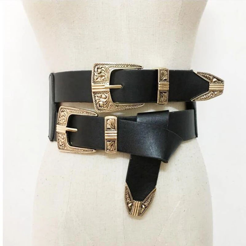 Ремень женский кожаный с двойной пряжкой, с металлической пряжкой