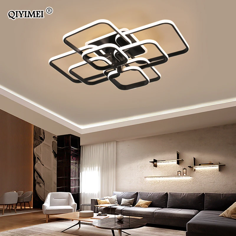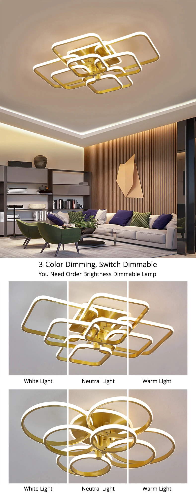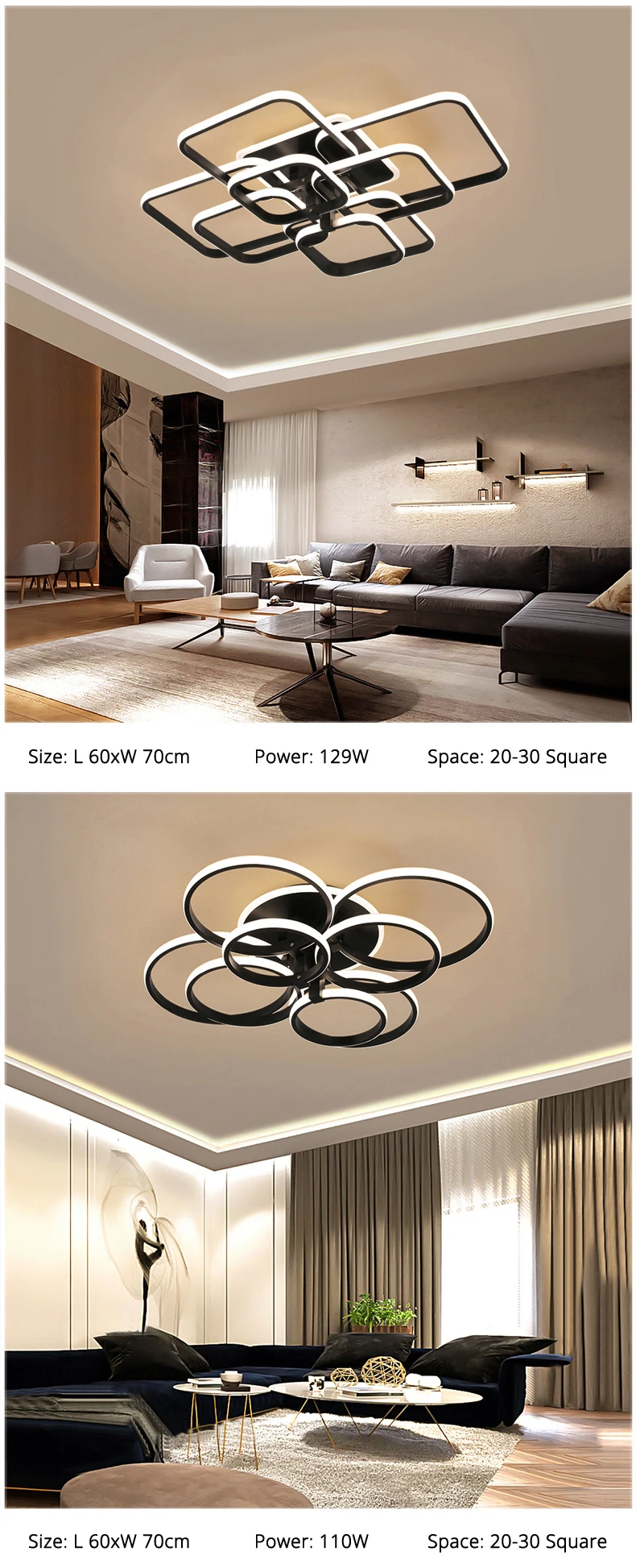 Квадратные круглые кольца потолочные светильники для гостиной, спальни, дома, современные светодиодные потолочные светильники, люстры, дропшиппинг
