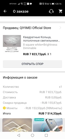 Страна: RU Body Color: 4 square black Wattage: APP With RC Dimmable Доставка: Cainiao Heavy Parcel Line 10.02.2021