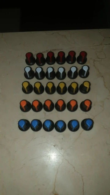 ручка потенциометра 30 шт.лот ручки потенциометра 15x17 мм 6 мм WH148 потенциометр B10K цветная ручка Крышка Желтый Оранжевый Синий Белый Красный 5 значений * 6 шт. = 30 шт.