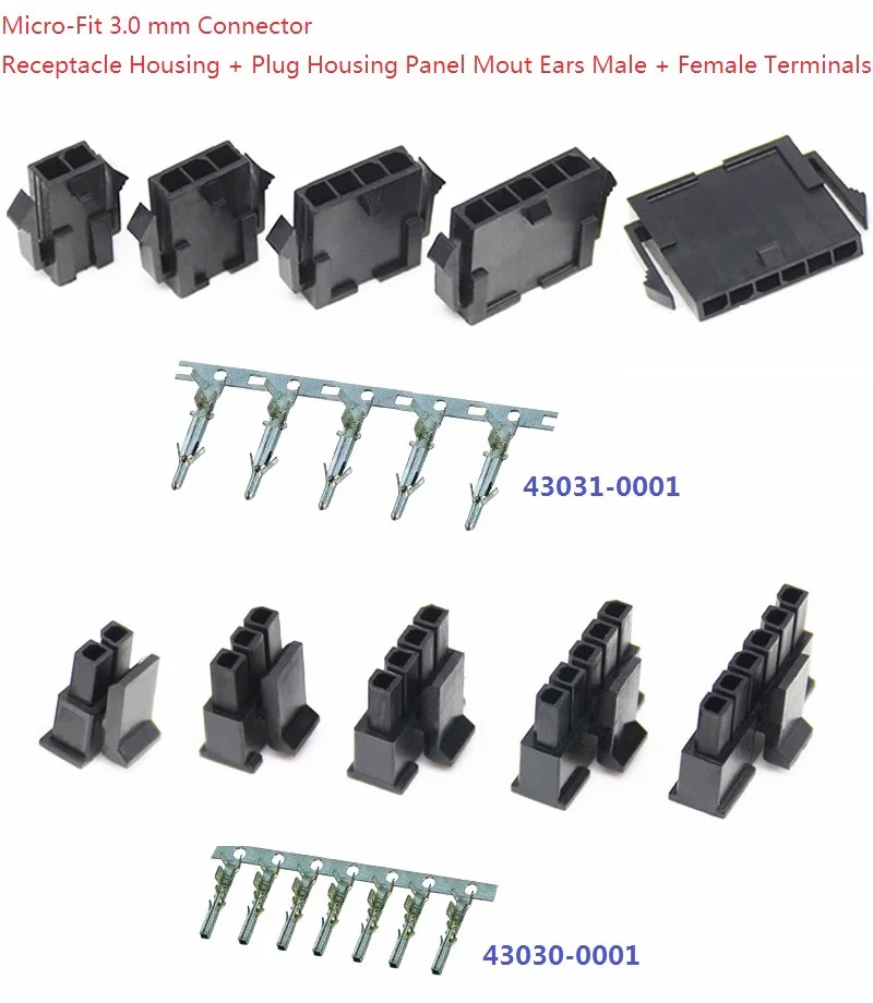 10 комплектов микро-фитинг 3,0 мм корпус розетки + Корпус вилки крепление уха + Мужской Женский обжимной терминал 2 3 4 5 6 схем