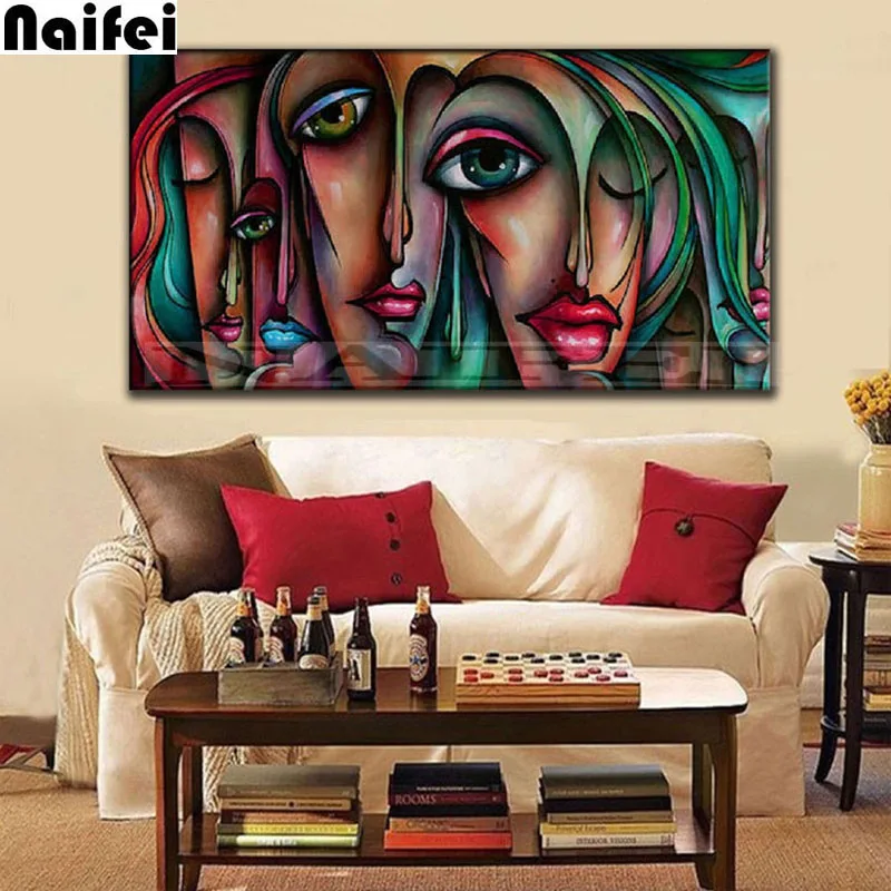 Полноразмерная Алмазная картина 5D сделай сам, абстрактное искусство, девушка с большими глазами, алмазная вышивка крестиком, мозаика, наклейки, украшение для дома