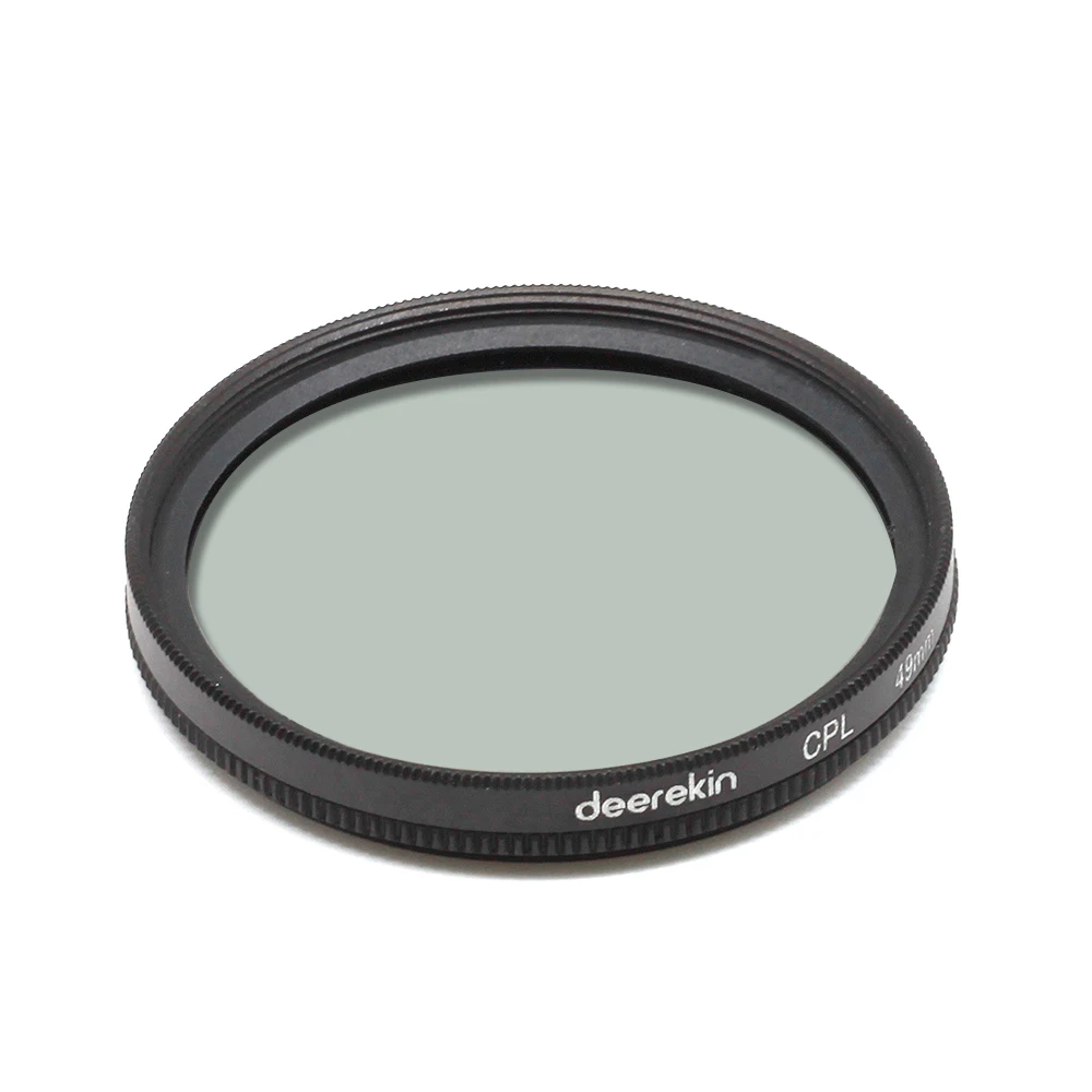 Deerekin 55 мм круговой поляризатор фильтры-Светильник, отражающий свет, становится поляризованным. Поляризационные фильтры используются для выбора, какой светильник попадет в объектив камеры. Они могут удалять нежелательные отражения с неметаллических поверхностей, таких как вода или стекло, а также насыщать цвета, обеспечивая лучшую контрастность. Эффект можно увидеть через видоискатель и изменить, вращая фильтр. Фактор фильтра варьируется в зависимости от того, как фильтр вращается и его ориентация на солнце.