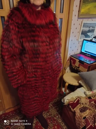 Продавец отзывчивый, все объяснил, подобрал размер бюст 102, бедра 112, как сидит и цвет dark red понравилось, всё соответствует описанию было бы лучше черный подклад. Удлинили шубу на 10 см и рукава на 10 см за 60 долларов. Заказала 15.01. пришло 08.02 с учётом пандемии. Два магазина отказали в поставке фабрики не работали.