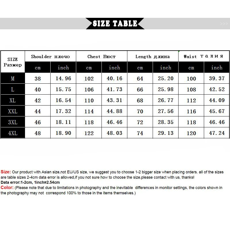 SizeAsian Size M/L/XL/XXL/3XL/4XL