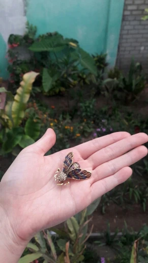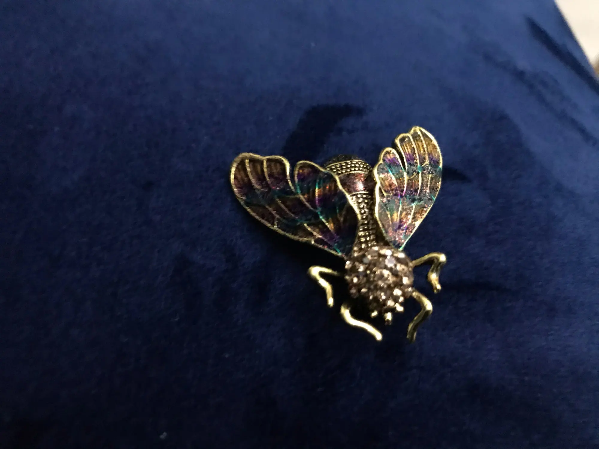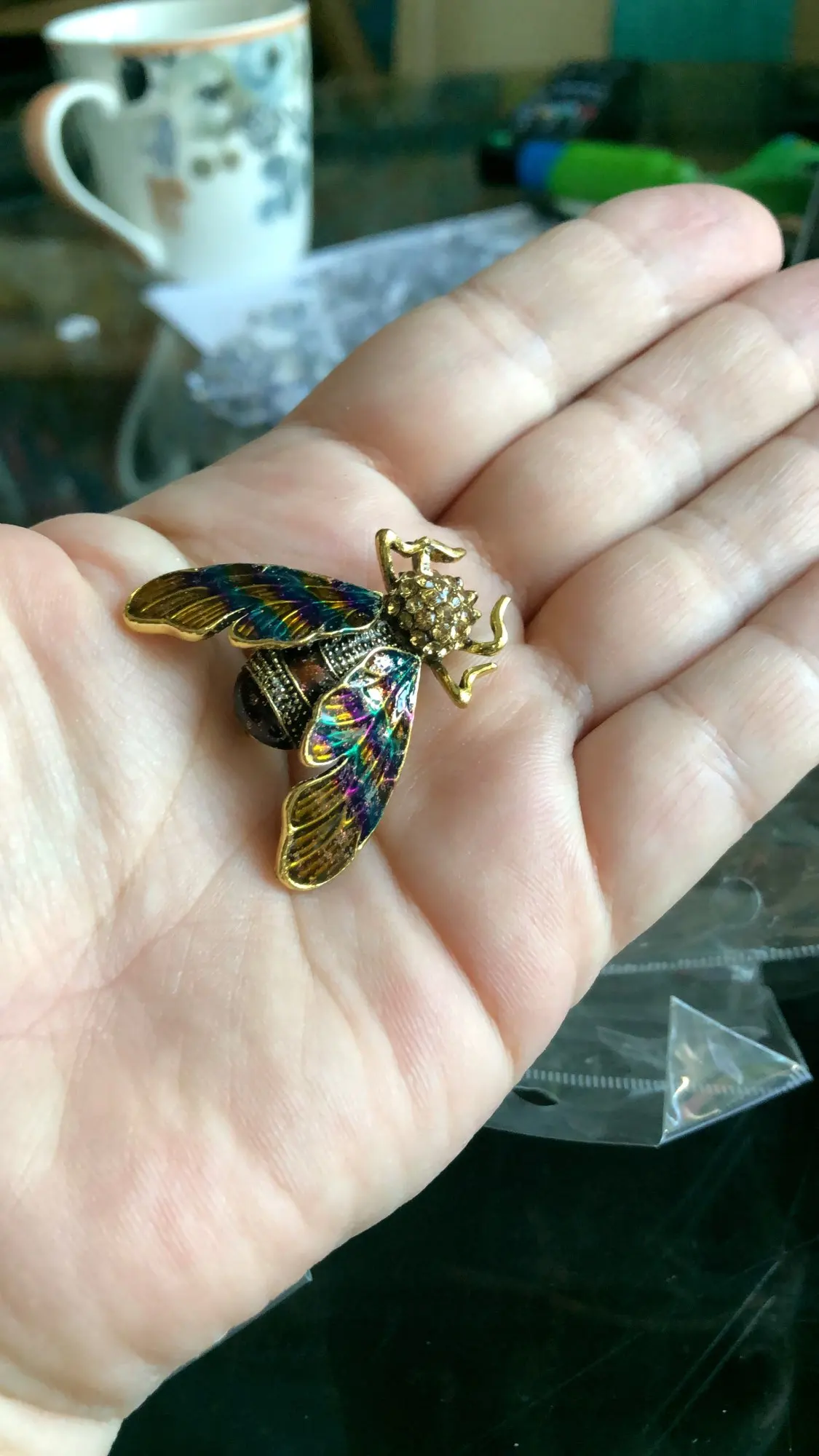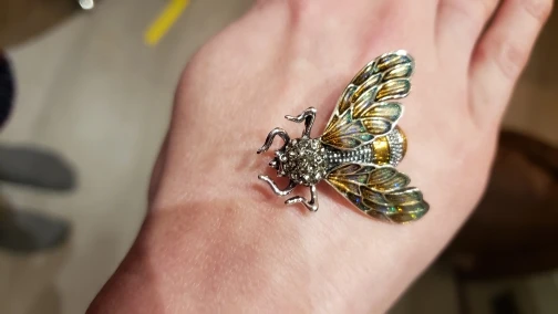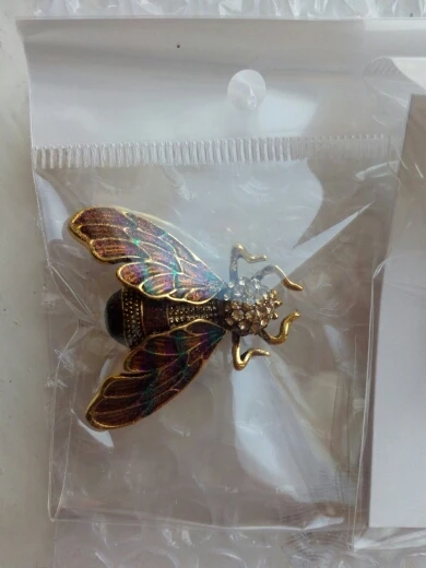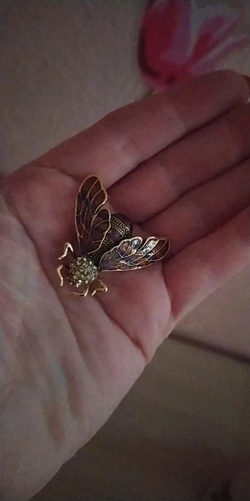 цикада неперевершена, мерехтливі крильця з блискітками й райдугою, камінці на голівці всі, застібка надійна, чудова прикраса