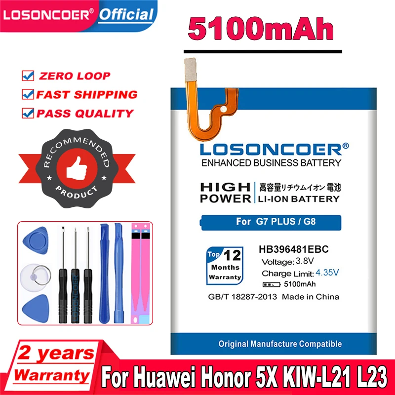 Аккумулятор LOSONCOER HB396481EBC, 5100 мА ч, для смартфонов Huawei ASCEND G7 PLUS, G8, HONOR 5X, G8X, RIO L03 -UL00AL00TL00