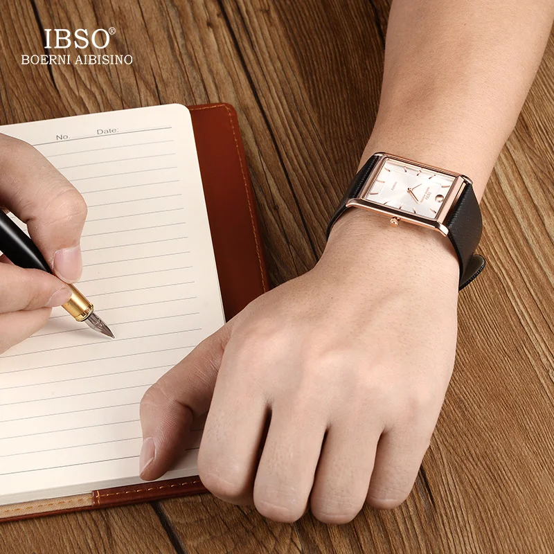 Мужские наручные часы IBSO, Роскошные Кварцевые часы с прямоугольным циферблатом, деловые мужские часы с кожаным ремешком, 2019 год, Erkek Kol Saati #2232