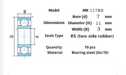 Миниатюрный подшипник MR117RS, 10 шт., 7*11*3 (мм), бесплатная доставка, высокоскоростные запасные части механического оборудования из хромистой стали с резиновым уплотнением