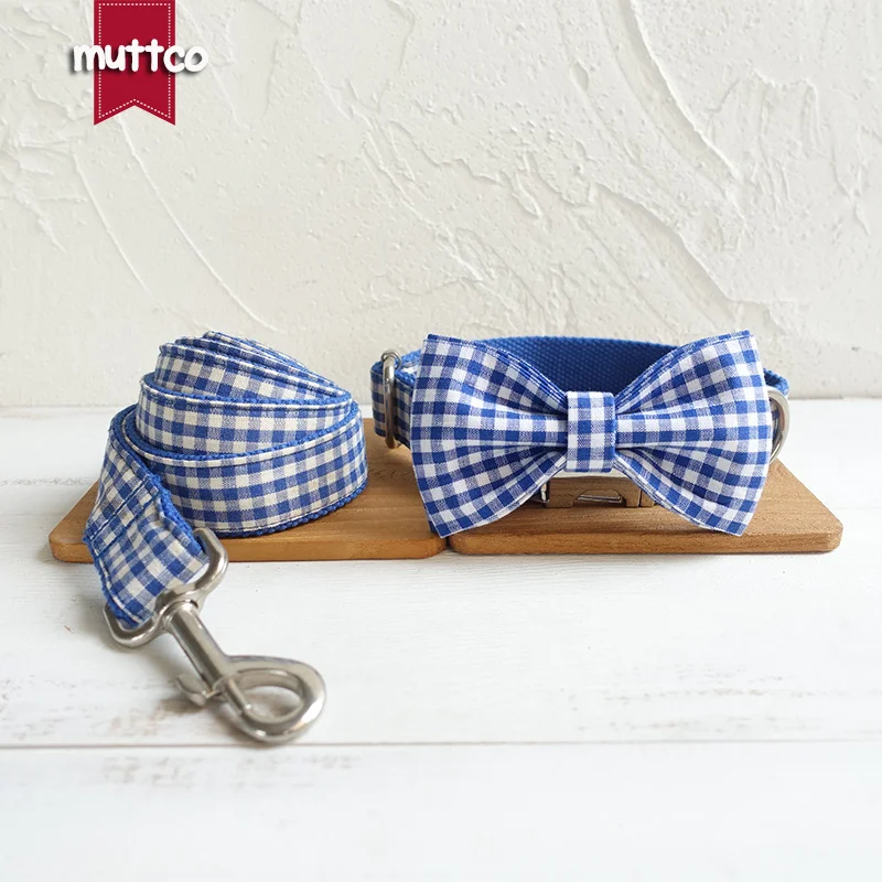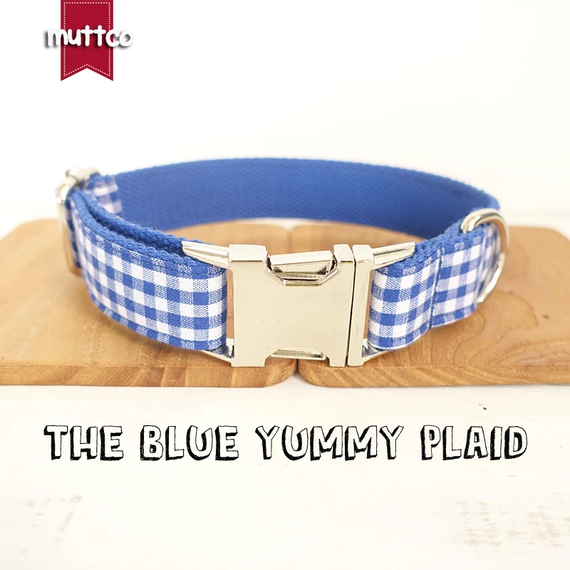 MUTTCO розничная продажа, индивидуальный дизайн, высокое качество, персонализированный воротник, синий YUMMY плед, регулируемые ошейники для собак, поводки, 5 размеров, UDC046