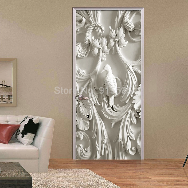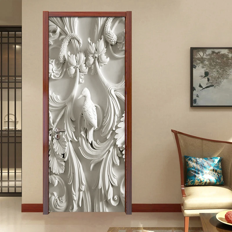 Европейский стиль 3D стереоскопические тисненые ветки птиц, фотообои для гостиной, спальни, двери, самоклеящаяся Настенная Наклейка