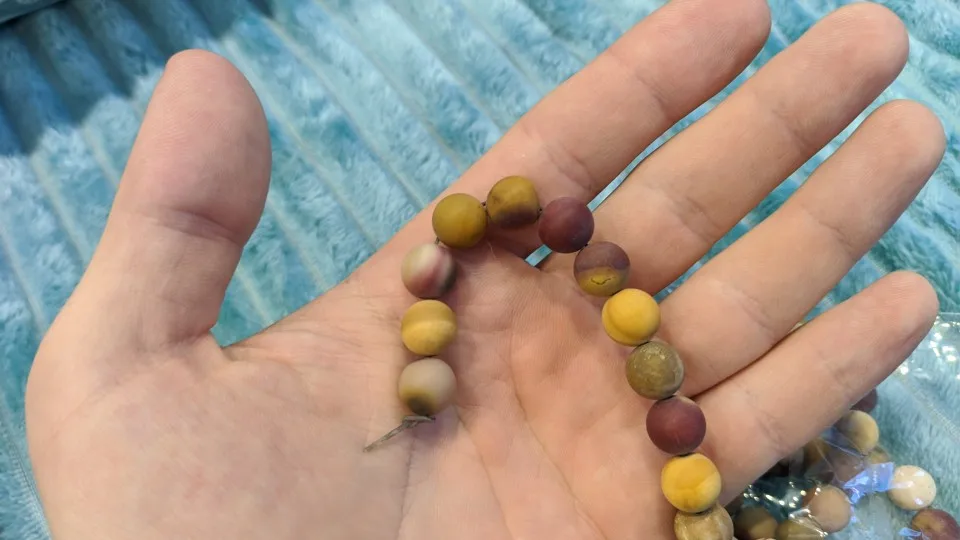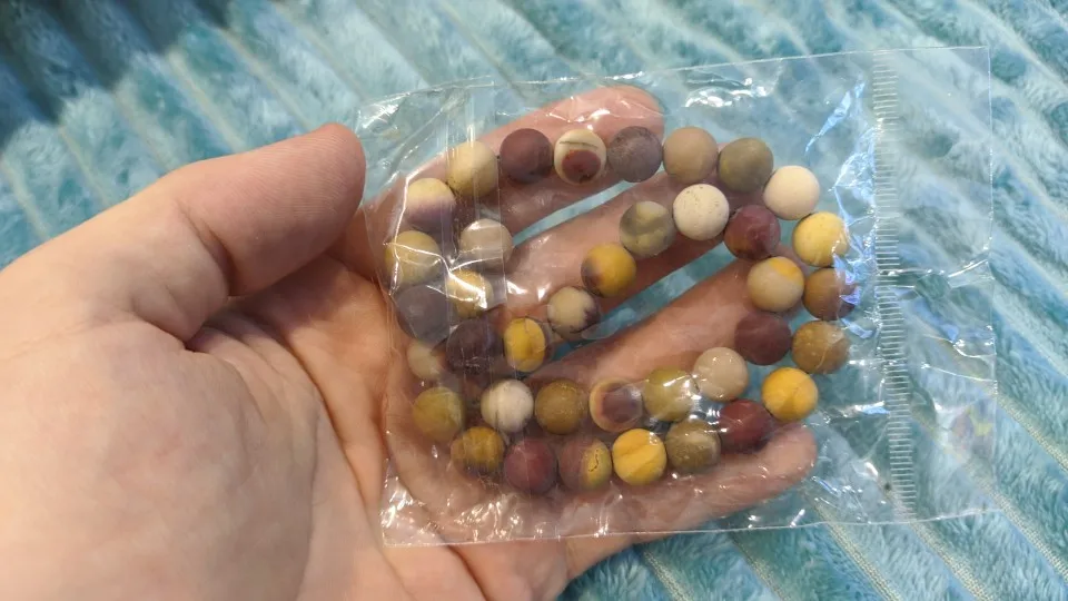 Огорчило то, что в пришедших бусин ах большинство бусин одного светлого тона без рисунка в камне. Но камень натуральный.