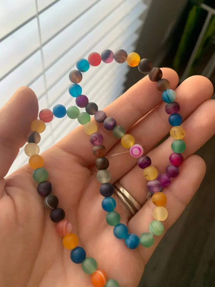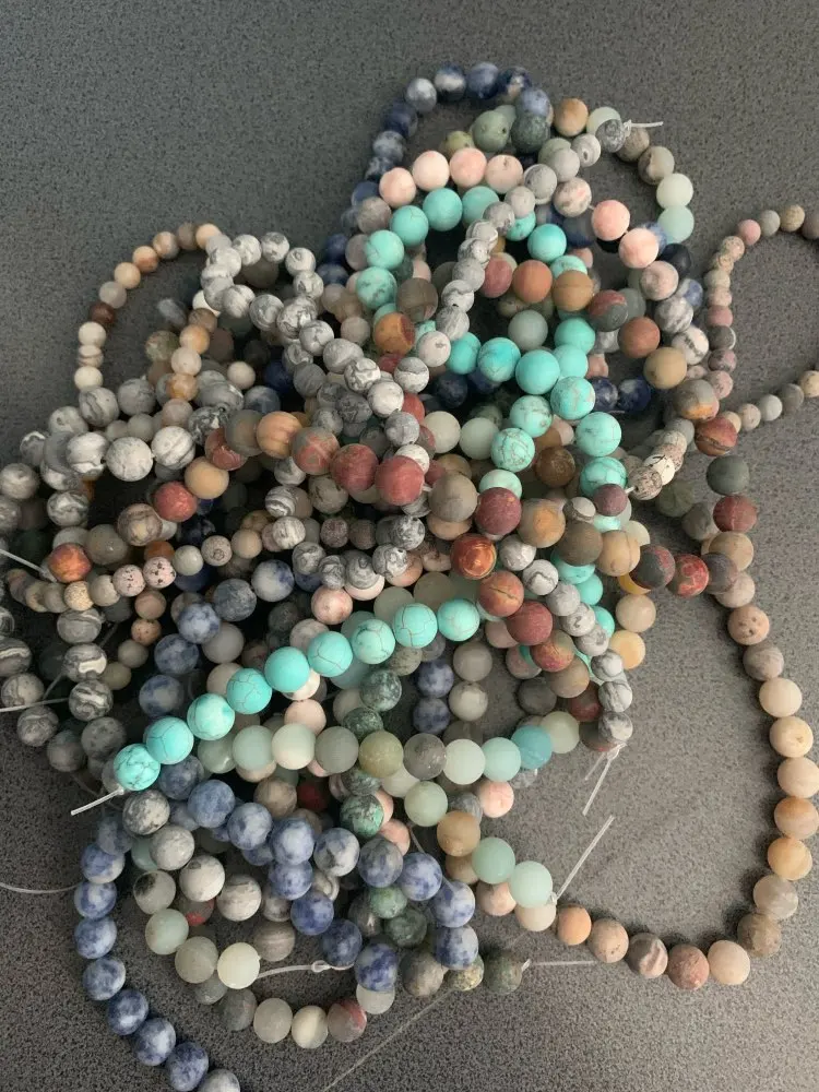 I love the color, very nice A lot of different coors and also the matted effect is great. they came protected and were in good shape. The hole is nice and big enoigh for big plastic thread which it needs because it is heavy. real stones. Good quality. Fairly fast delivery. Good price. I would buy here again and again and again.