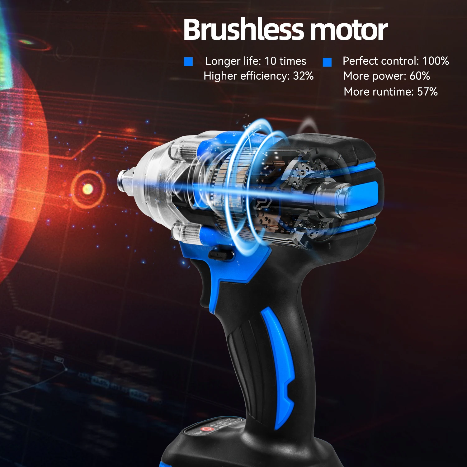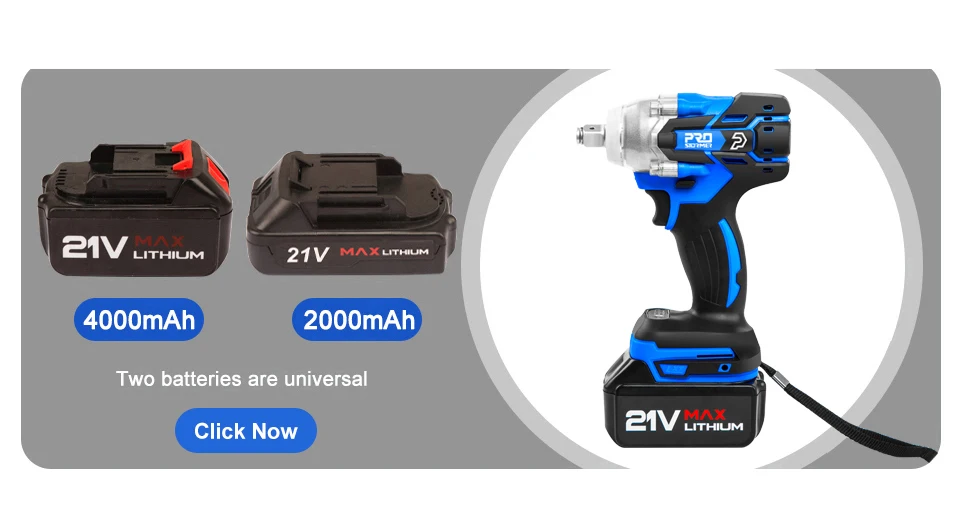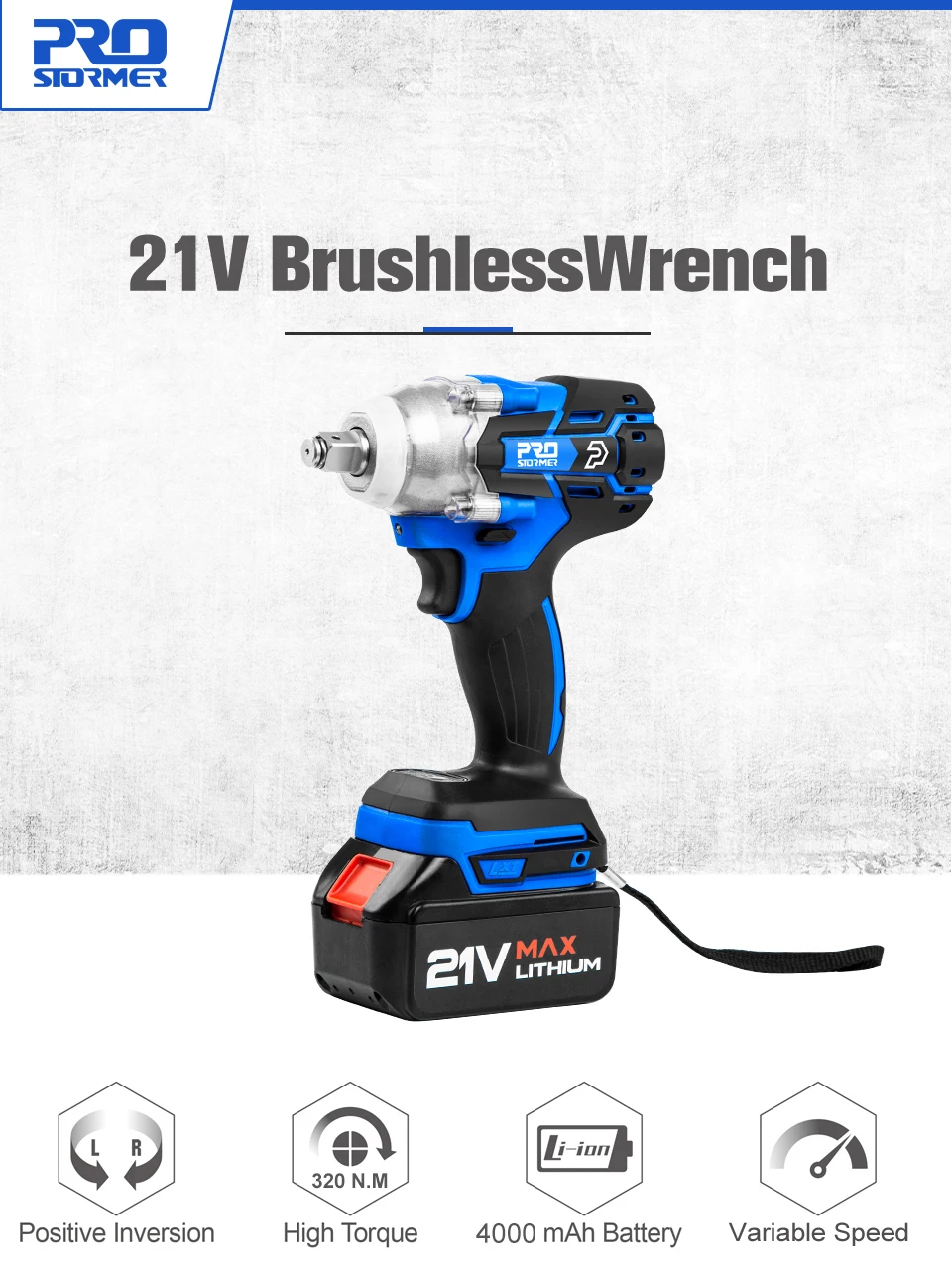 Ударный гаечный ключ 21 В Бесщеточный аккумуляторный электрический гаечный ключ Электроинструмент Момент затяжки 320 Нм Дополнительная аккумуляторная батарея Доступна у PROSTORMER