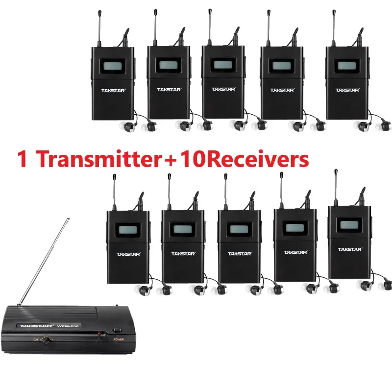 Беспроводная система мониторинга Takstar wpm-200wpm200, УВЧ, Беспроводная стереогарнитура, сценические мониторы, 1 передатчик + 10 приемников