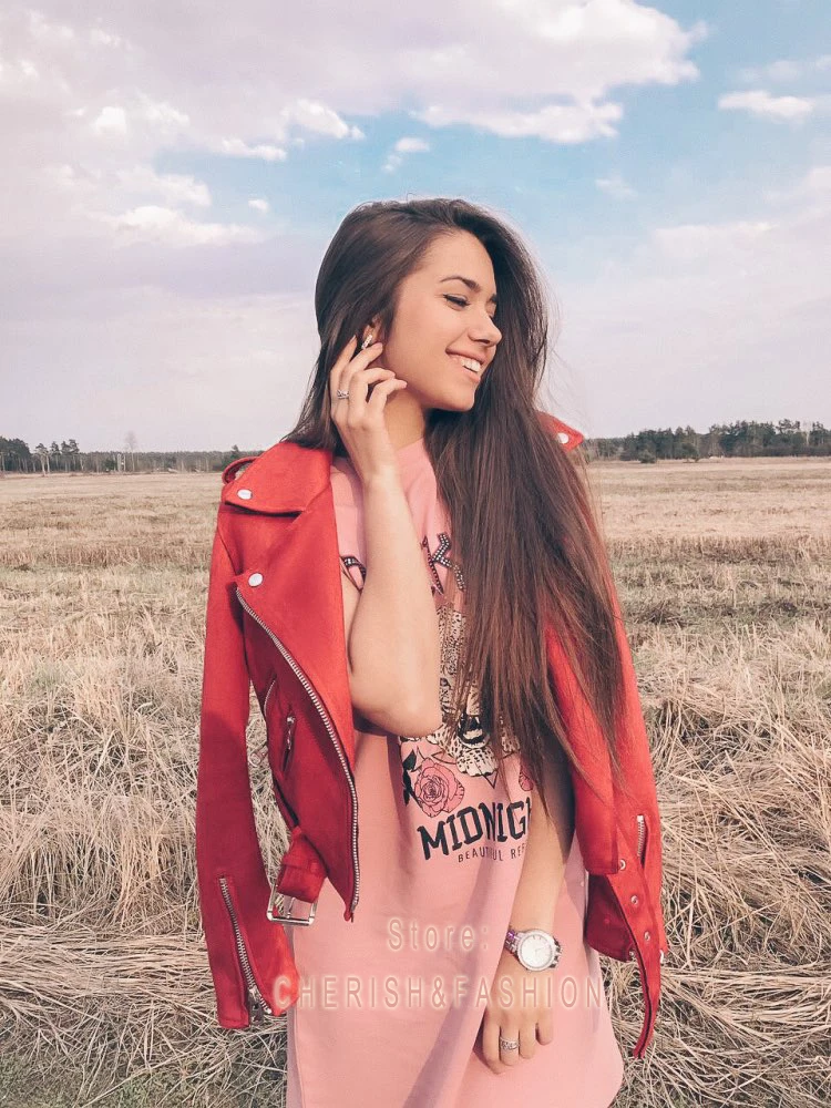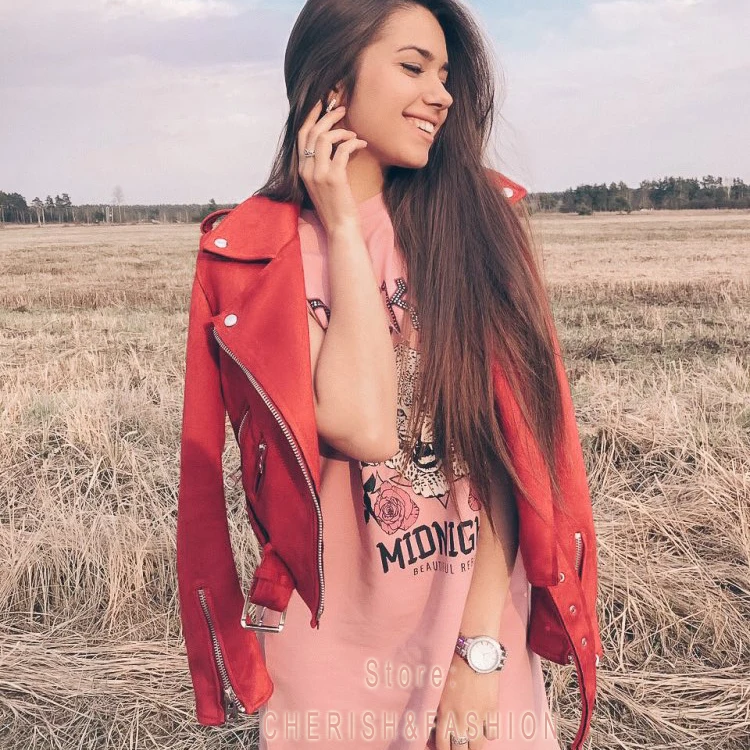 Женская мотоциклетная куртка из искусственной кожи, красно-розовая верхняя одежда с ремнем, 7 цветов, Осень-зима 2021