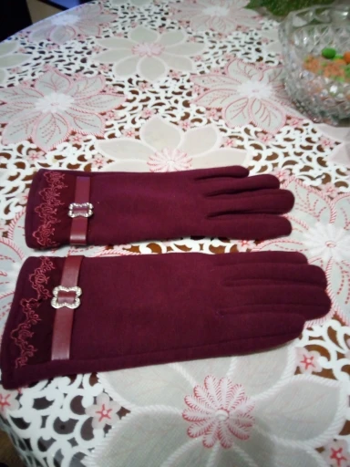 аккуратные перчатки, сшиты добротно. телефон на них реагирует хорошо. телефон цвет не точно передаёт, они как спелая вишня, очень красивый цвет