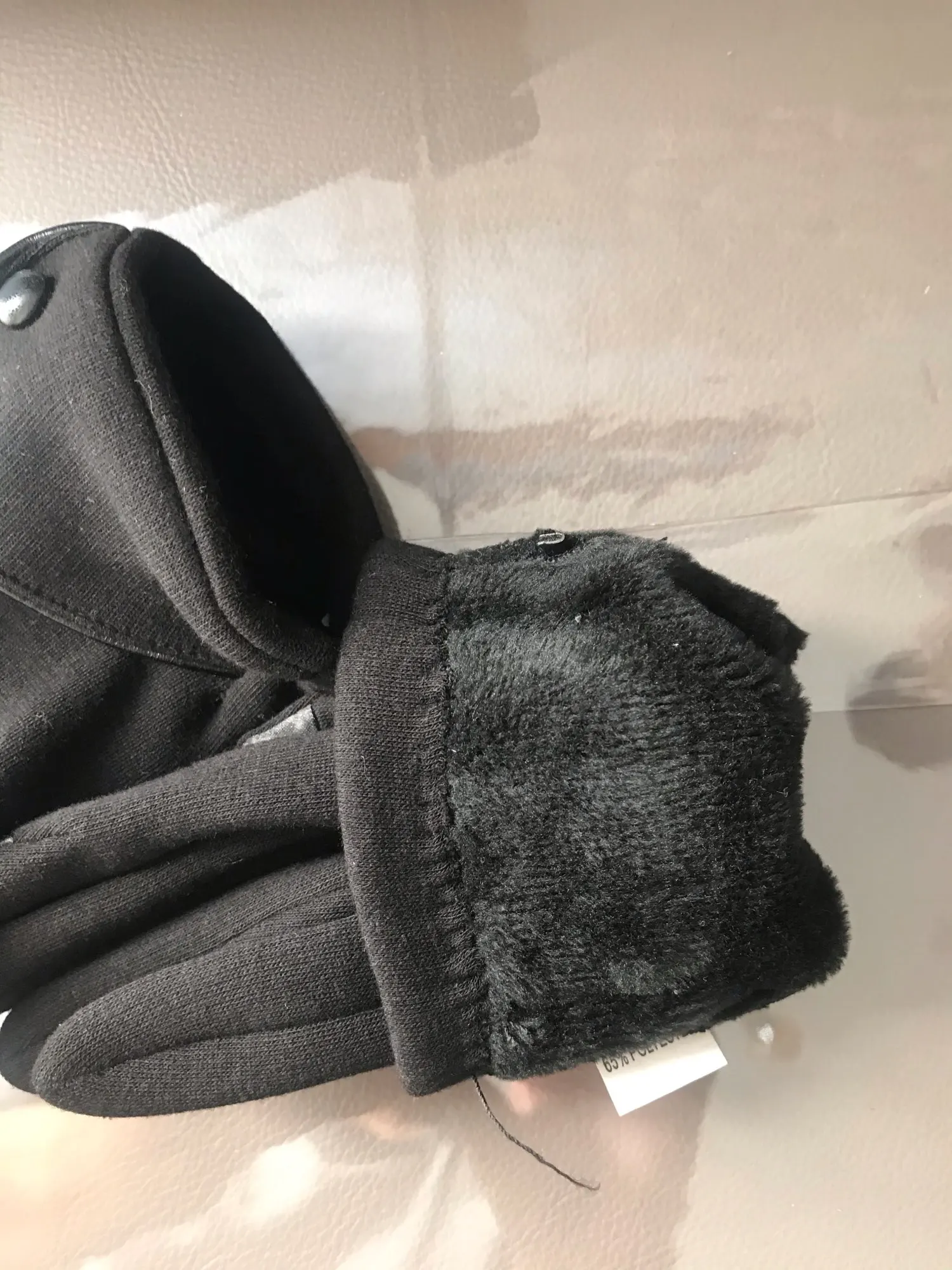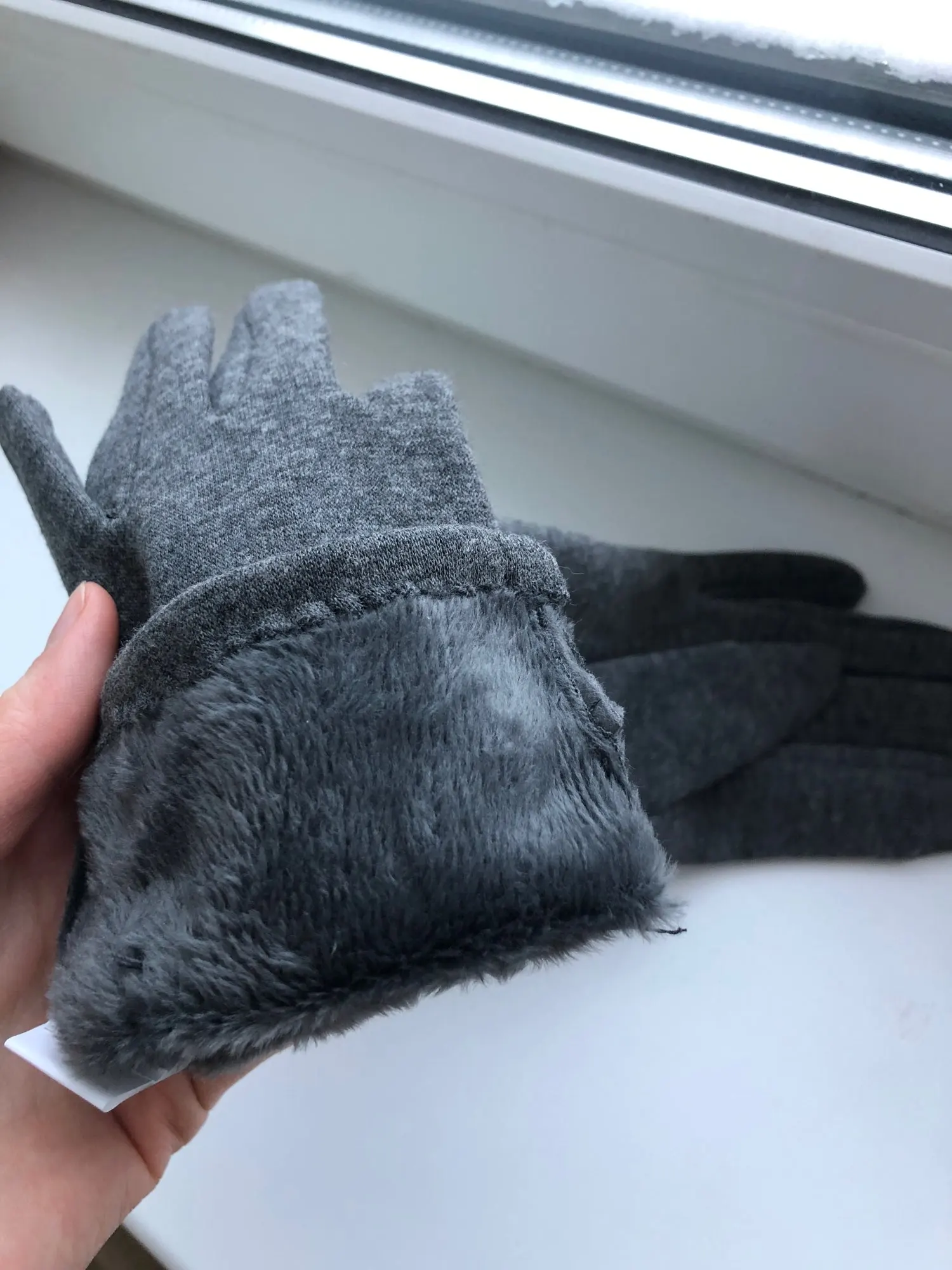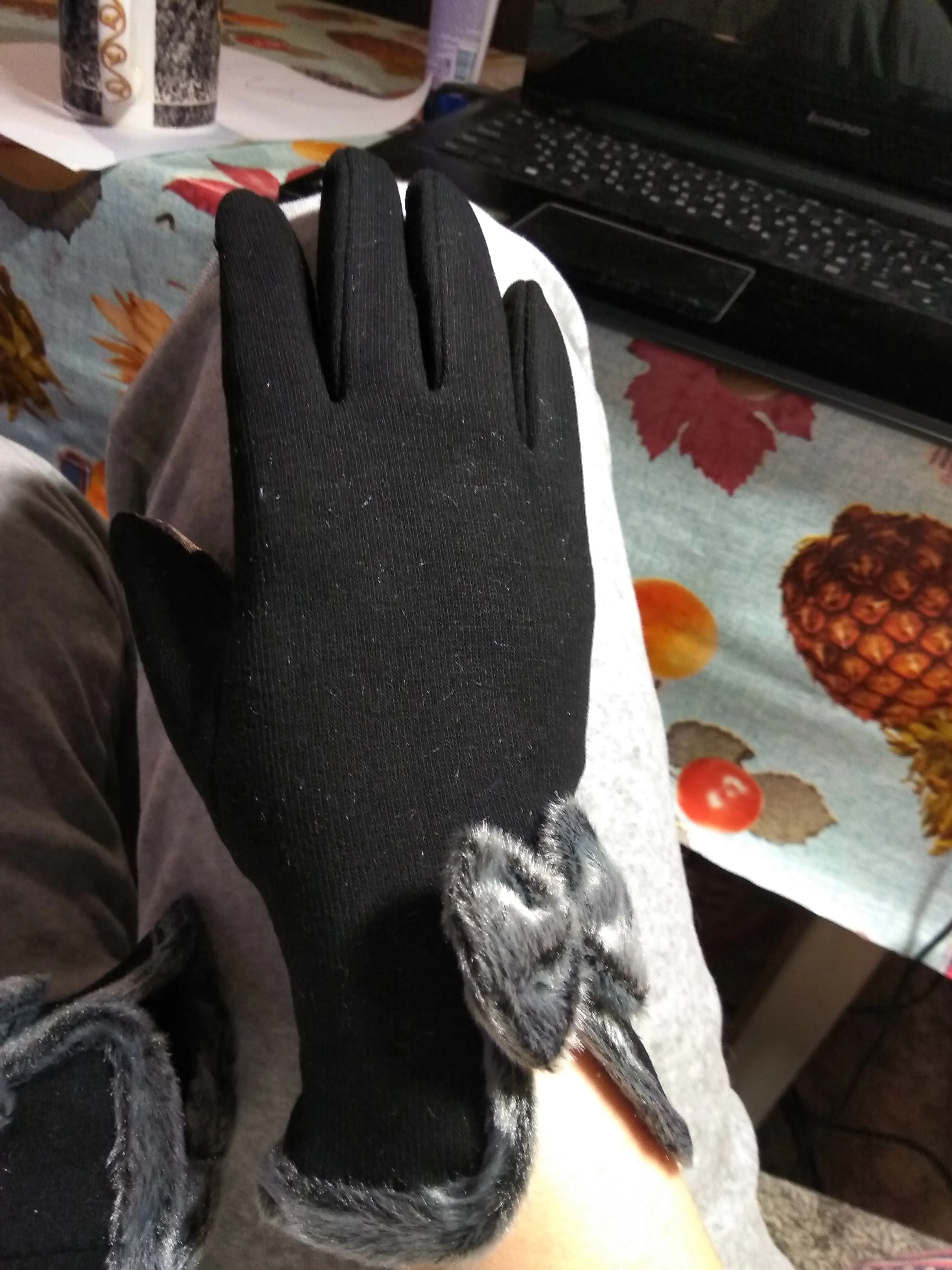 Симпатичные перчатки, работают на сенсорном экране, внутри короткий мех. Качество пошива хорошее, обрезала одну торчащую нитку.