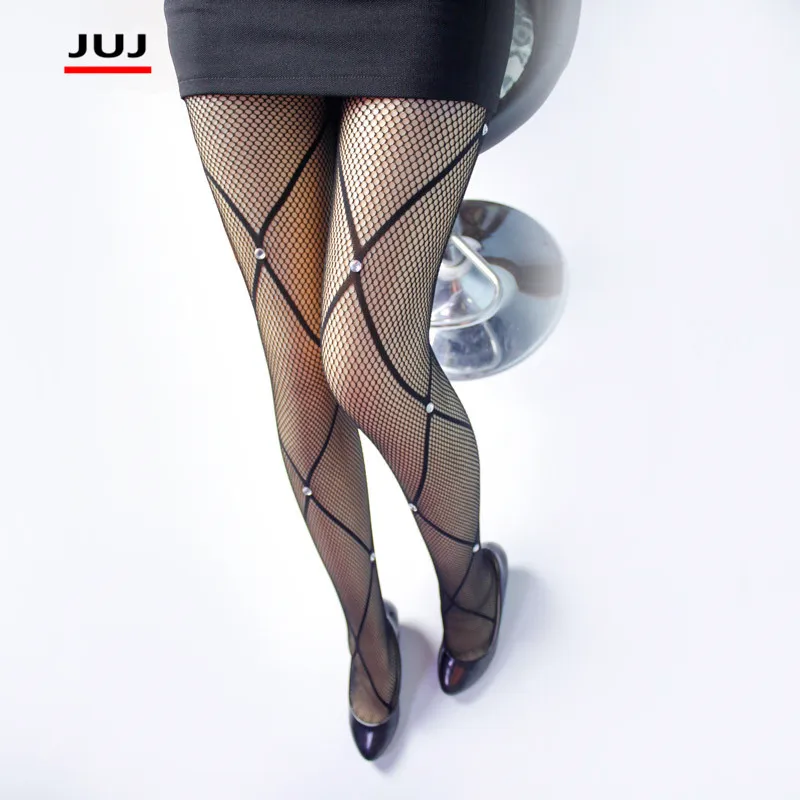Женские Летние черные пикантные сетчатые колготки больших размеров в стиле ретро, жаккардовые блестящие стразы с узким узором, 2021