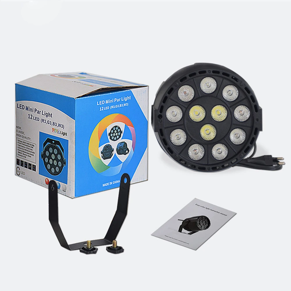 Характеристики продуктаВходное напряжение: AC90--240V,50-60 ГцПотребляемая мощность: 36 ВтСветодиодный источник: 12x3WЦвет: красный, зеленый, синий, белыйDMX-Каналы управления: 8 каналов DMXРежимы работы: DMX512, автозапуск, звуковое действие, стробоскоп, автономный и мастер/раб, с богатыми передовыми встроенными программами.Длительный срок службы светодиода (более 60000 часов)Продукт Размеры: 12x9,1x11,5 смПродукт Вес: 0,4 кгИспользование помещений: сцены, ночные клубы, дискотеки, отели, магазины, семейная вечеринка на день рождения, подходит для ди-джеев