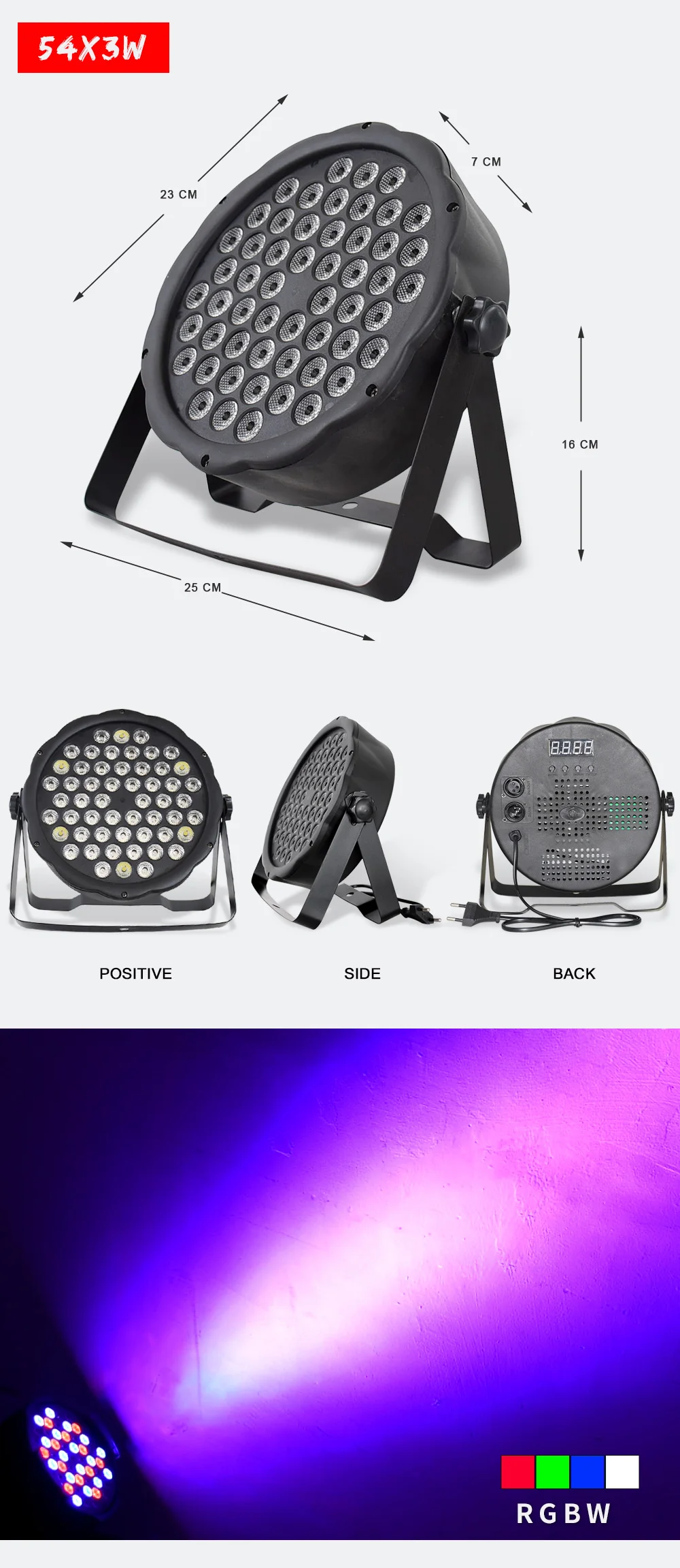 54X 3W светодиодный светильник RGBW Цвет DMX512 светодиодный светильник для мытья для DJ дискотечный светильник ing