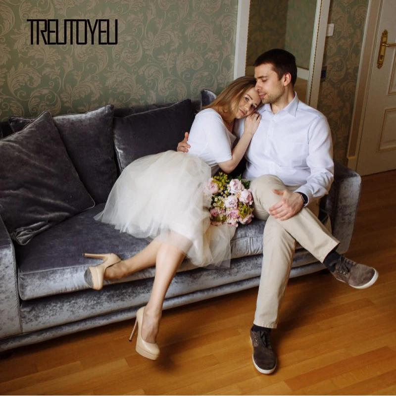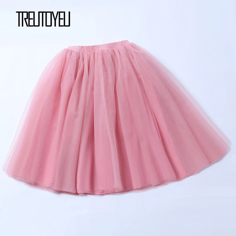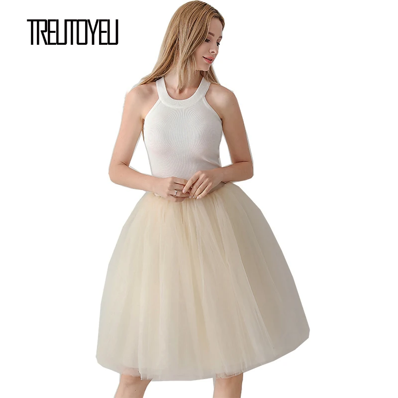Юбка-пачка средней длины Treutoyeu из тюля, шикарная 6-слойная плиссированная юбка цвета шампанского в Корейском стиле, с завышенной талией, в стиле Харадзюку, на лето