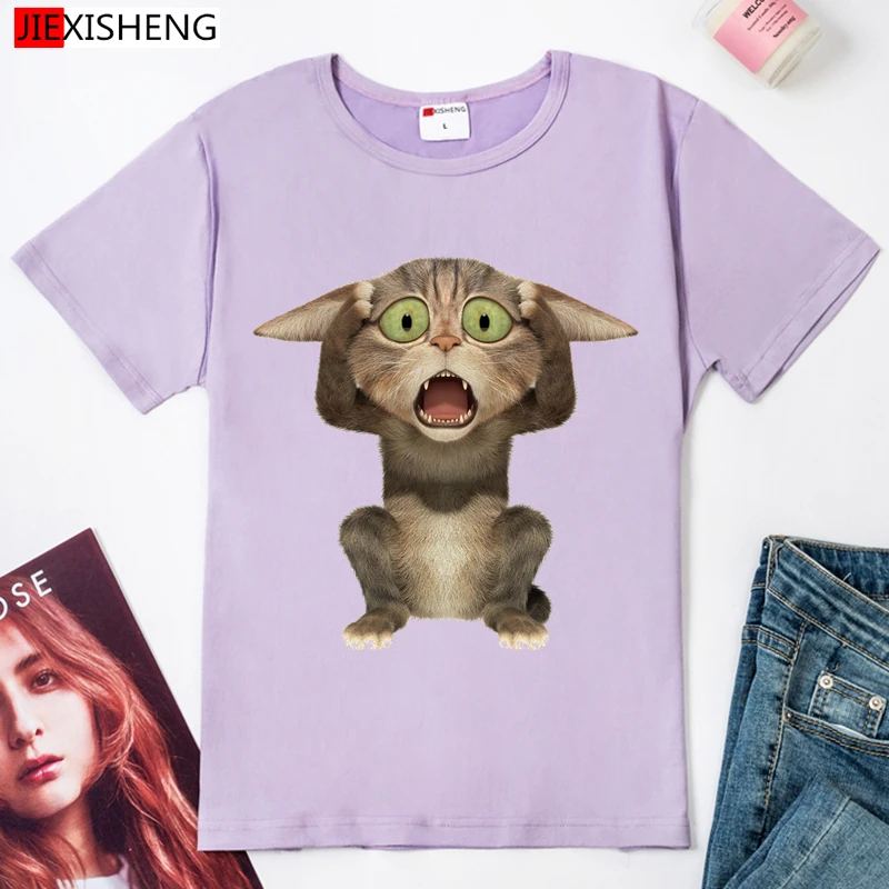 JIXISHENG женская футболка с принтом мультяшного кота Летняя Повседневная смешная футболка с коротким рукавом женские белые топы Футболка HH298