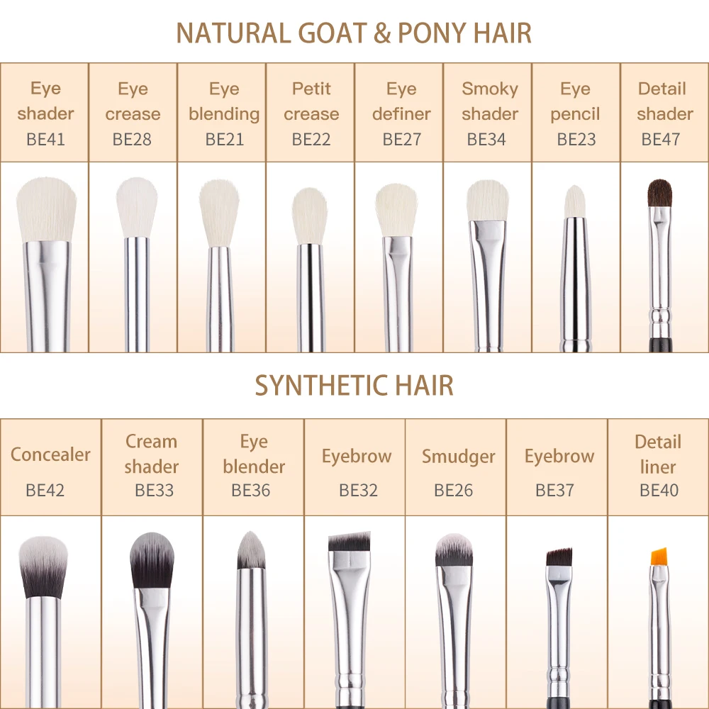 Набор кистей для макияжа BEILI, 12-19 шт., натуральный ворс, для растушевки теней, подводки для глаз, для бровей