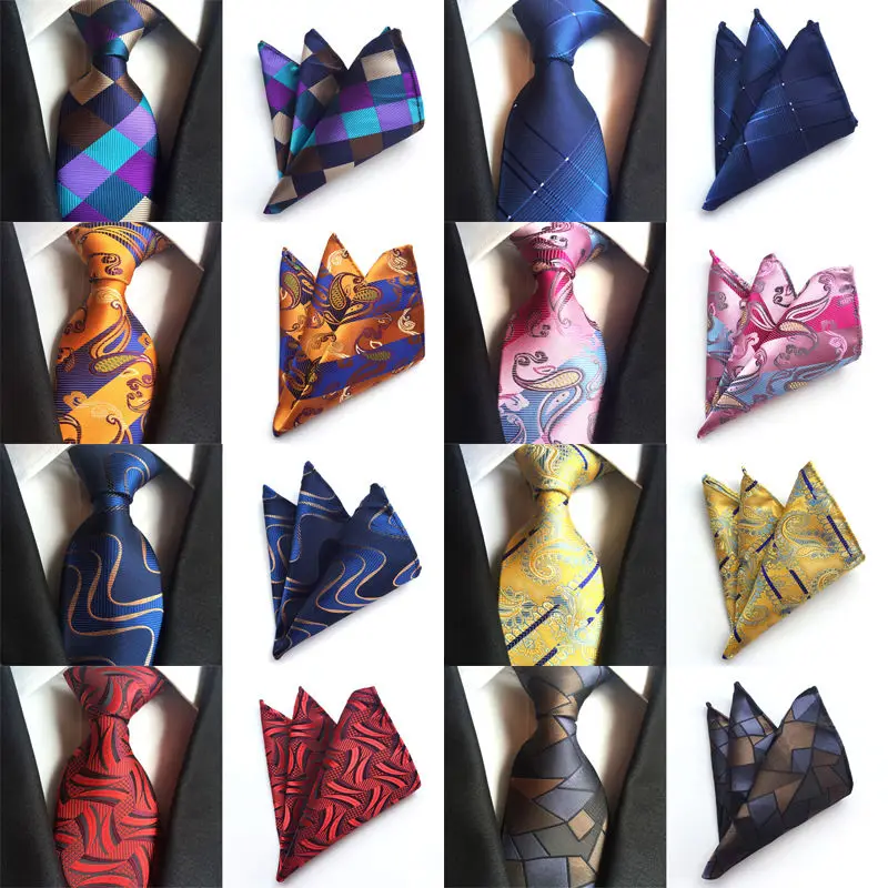 Новый Шелковый Классический галстук с узором пейсли и карманом, квадратный костюм Hanky, Свадебный Мужской галстук-платок, золотой, фиолетовый, розовый, синий, желтый