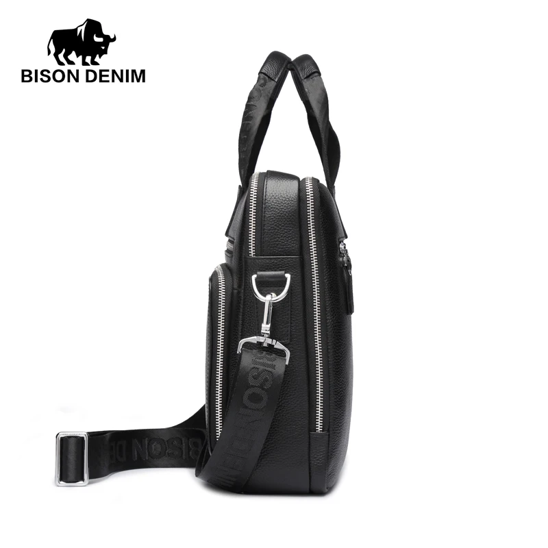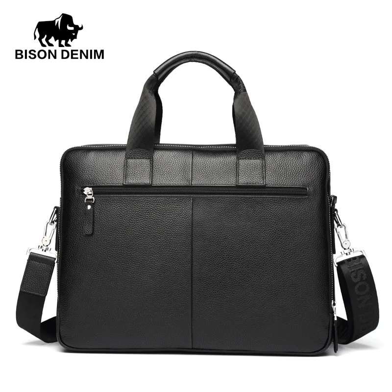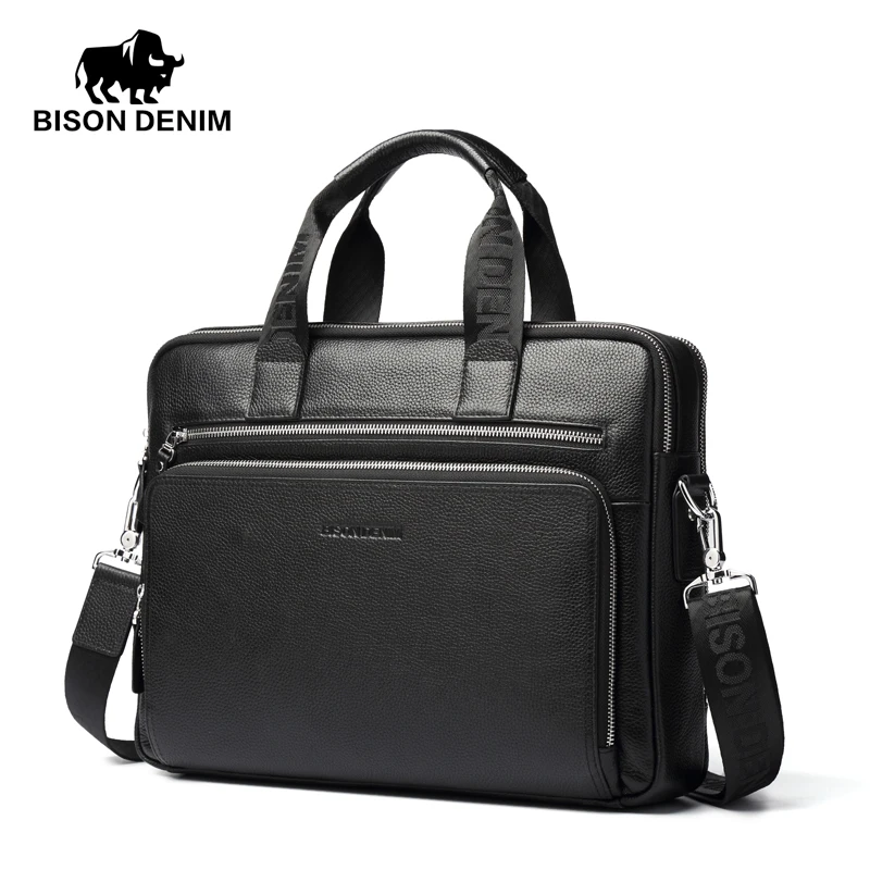 Мужская сумка из натуральной кожи BISON DENIM, деловая сумка для ноутбука