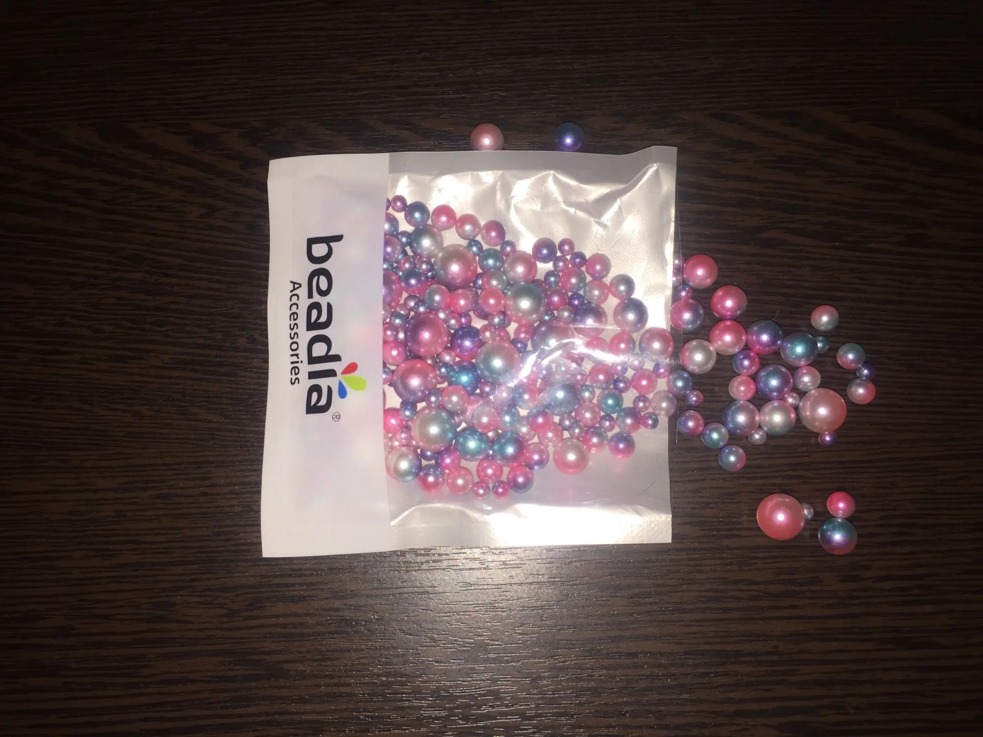 Бусины красивые. Но имеют очень неприятный запах!!! Резкий. Очень активный запах лака для ногтей, ацетона.