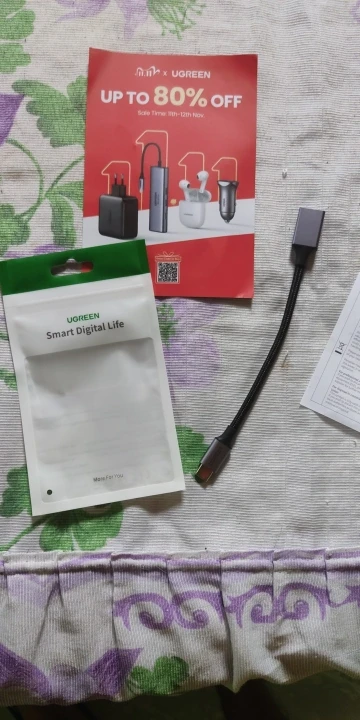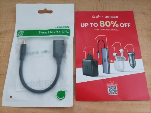 товар пришел чуть раньше намеченного срока, качество хорошее, работает практически на всех флешках и телефон их видит, единственное не смог определить внешний жёсткий диск, но я думаю, что это из-за пропускной способности кабеля жёсткого диска, а так все отлично и ugreen как всегда на высоте. рекомендую продавца